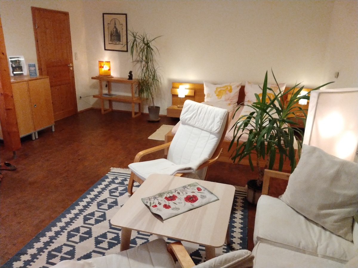 Ready for a short trip in Saxony? Make yourself comfortable on vacation in my 48 sqm charming apartment in the historic walls in the middle of the romantic city center of Pirna. A lovingly renovated apt is waiting for you right on the Malerweg - the perfect starting point to get to know all facets of Saxon Switzerland, Pirna and the surrounding area. The apt has everything you need on your trip: queen-size bed, comfy sofa, fully equipped kitchen,bathroom & TV with Netflix, free 100MBit Internet.