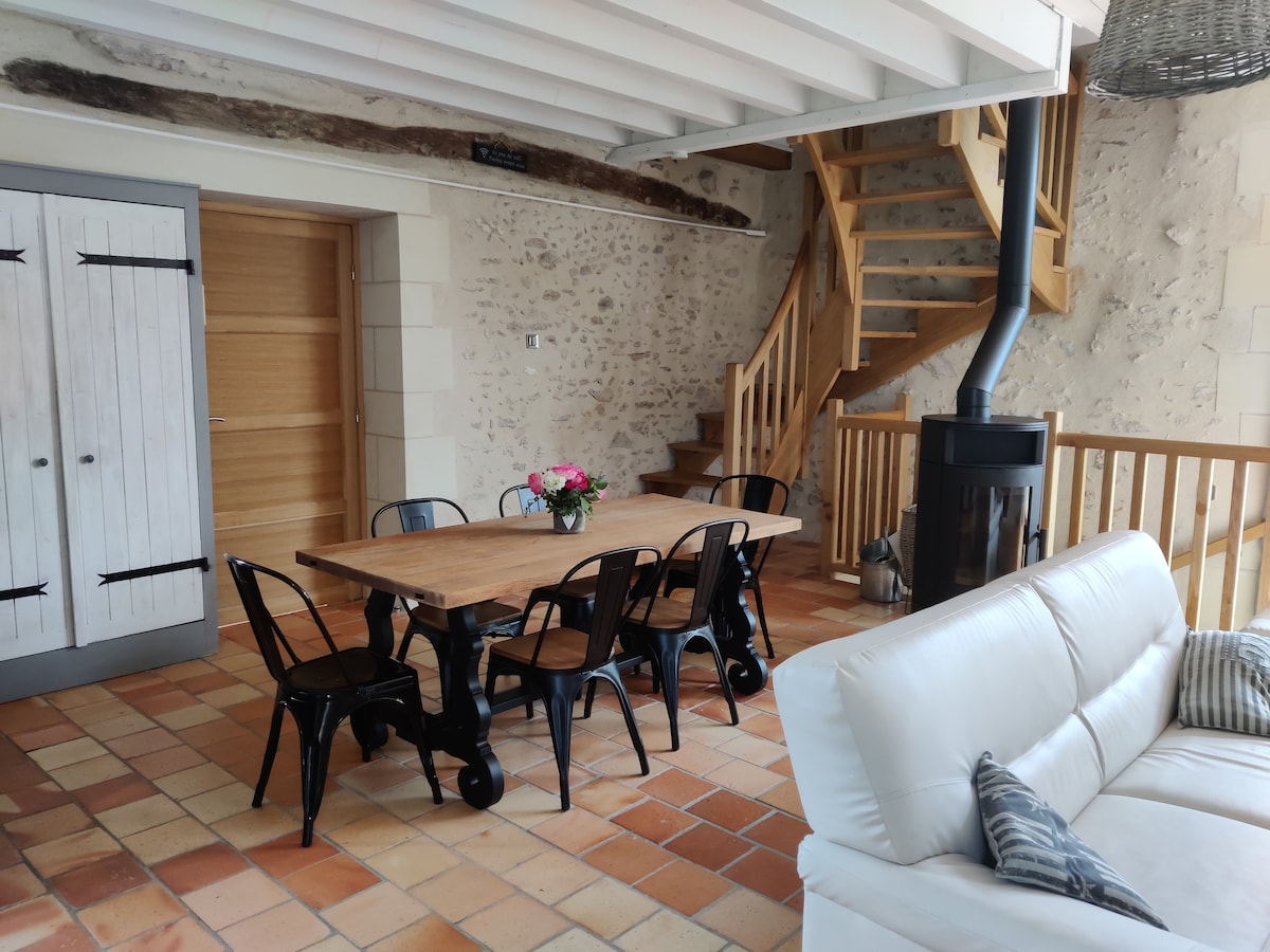 We welcome you in our two hundred years old farm ! Ideally situated in a charming village of the Loire Valley, you'll enjoy staying at our new rebuilt cosy appartment (living room down stairs and bedrooms/kitchen at the first floor). You'll have the exclusive use of the warmed swimming pool, the house and its beautiful and flowery courtyard. Warmed swimming pool available from april to october
