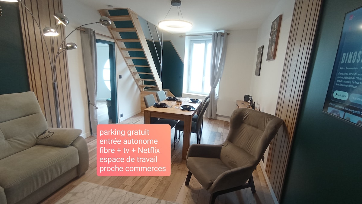 ⭐⭐⭐⭐⭐ - Situé dans le centre ville de Vendôme, au rez-de-chaussée, avec parking devant l’entrée, l'appartement type Loft de 55m² " BALNEO VENDÔME " vous accueille dans une ambiance relaxante, parfait pour les séjours hyper cosy pour 1 ou 2 personnes. SPA Vendômois, Appartement luxueux, Love room, Escale hyper cosy, voici les différentes appellations qui pourraient correspondre à notre hébergement. Créé en juin 2024 "BALNEO VENDÔME" possède tout le confort nécessaire à votre séjour