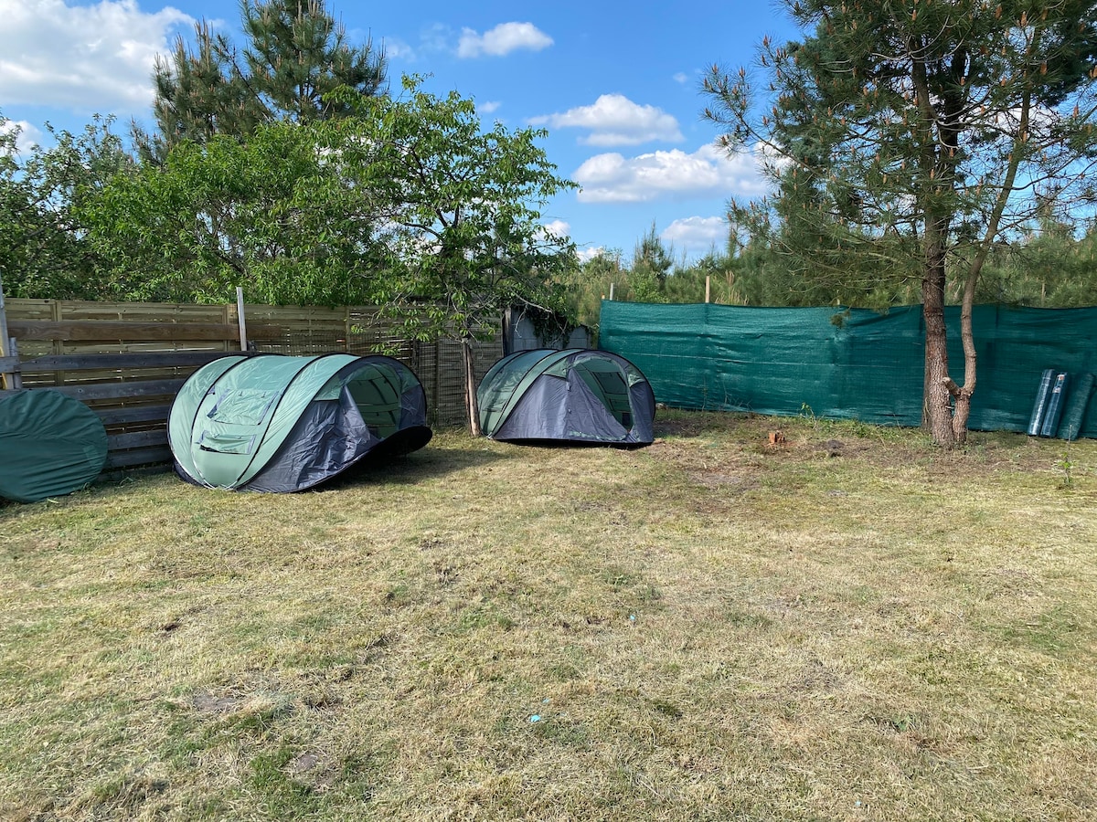 Le camping les Cabanes du Tertre vous propose cette grande tente canadienne avec 2 espaces nuits (1 lit double en mezzanine et 2 lits simples en bas) et un espace de vie cosy de 20m². Juste à côté, sur votre emplacement, un petit chalet composé d’une cuisine tout équipée et d’un espace salle d’eau avec une grande douche, lavabo et wc complète votre hébergement pour un confort personnel et optimal. (non chauffé) Le linge de lit et de maison ne sont pas compris mais disponible en option.