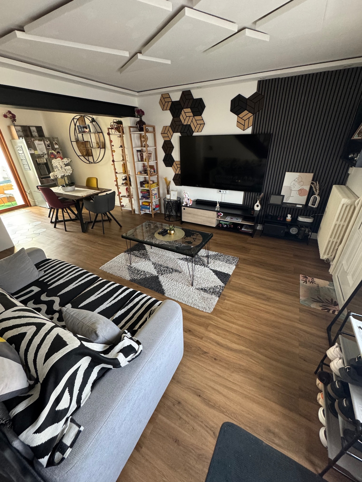 "Au Gobelet de Coëffort" Bienvenue dans notre maison-appartement de 135 m² proche de la gare nord ! Venez passer un moment de convivialité en famille ou entre amis autour du Babyfoot, du bar à Cocktail ou du Jukebox. La grande cuisine lumineuse et le spacieux salon permettent de jolis moments de partage. Notre logement s'adapte parfaitement à vos moments de travail entre collègues : Wifi, RJ45, proche gare (10 mins à pied), 3 chambres avec SDB et WC privatifs, terrasse...