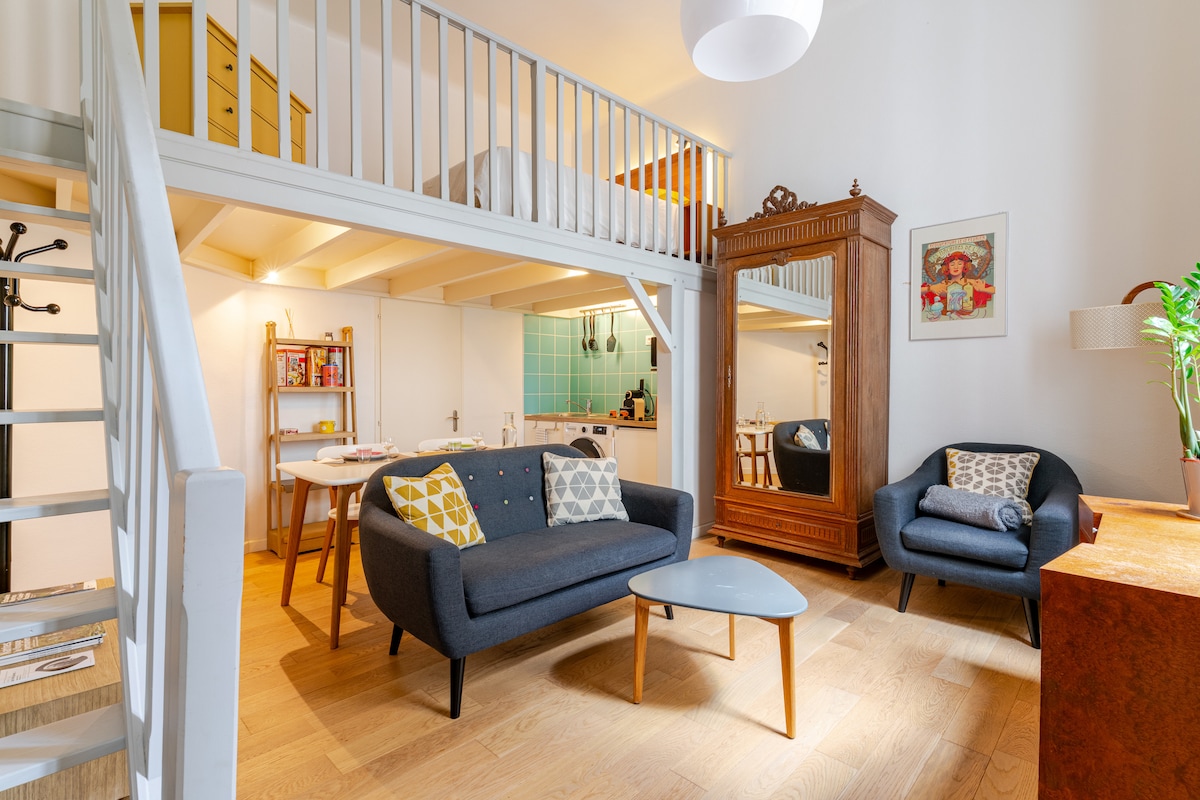 阁楼单间公寓,位于Château Charme对面,舒适