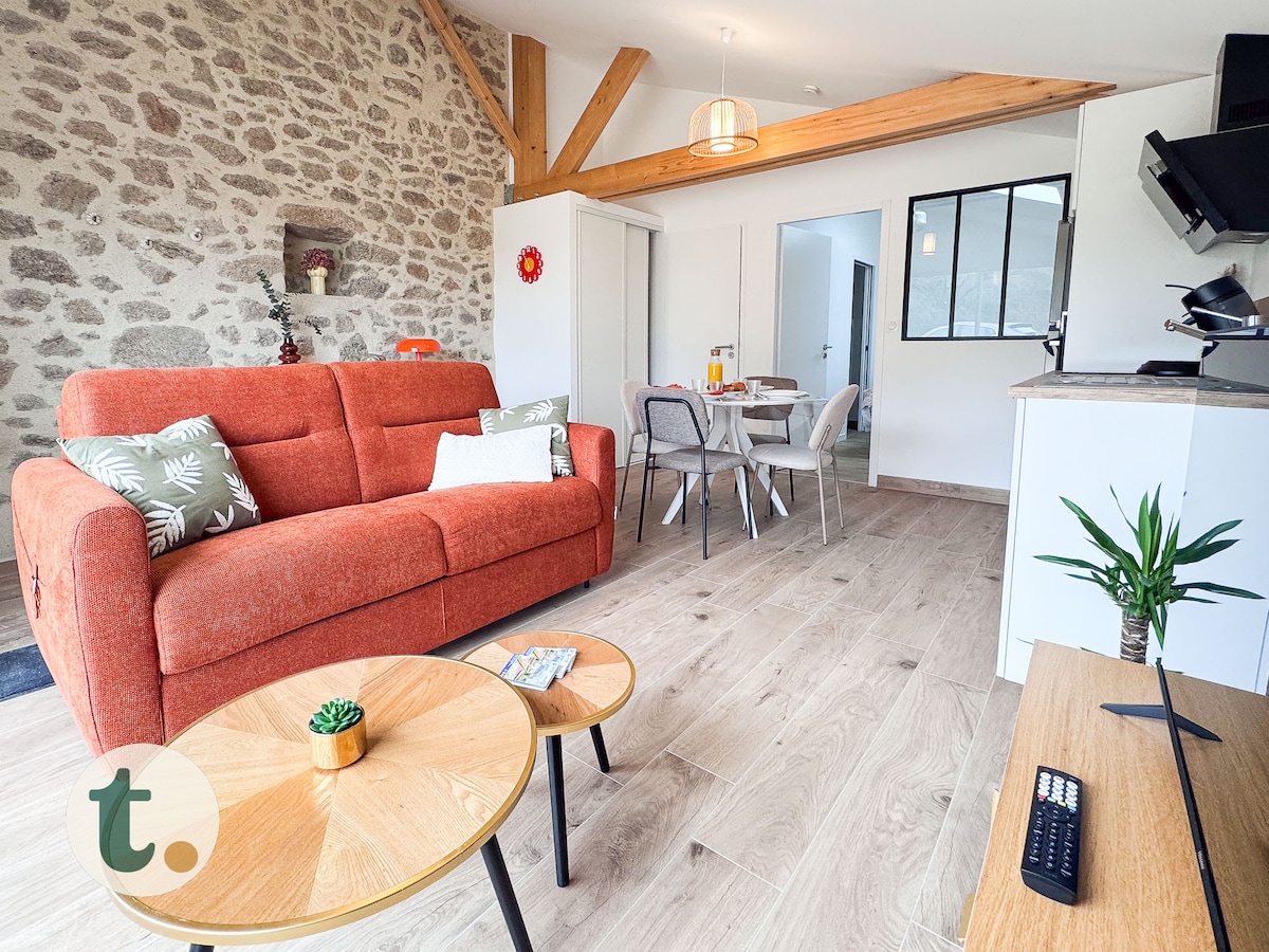 Bienvenue dans cette maison de plain-pied rénovée avec goût, mêlant le charme de l’ancien et une décoration moderne pour un séjour tout confort. 📍Située dans un hameau calme à moins de 10 minutes du Puy du Fou et des Herbiers, elle vous offre un cadre paisible tout en restant proche de toutes les commodités (commerces, restaurants, activités…).