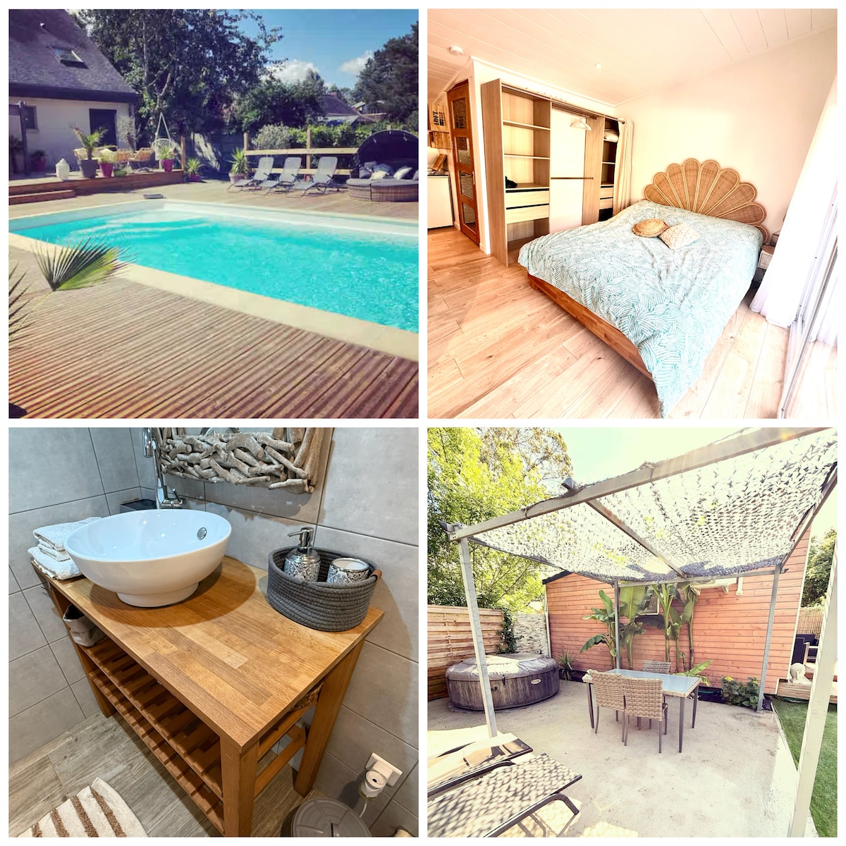 A quelques minutes de la mer et dans un cadre verdoyant, studio tout confort où vous passerez un séjour au calme et très agréable, et pourrez profiter de la piscine couverte chauffée et du spa en toute sérénité. Situé dans une impasse, pas de voisinage, On peut rejoindre le centre ville à pied et aller se ballader sur les sentiers qui longent la côte. Réservez une prestation BIEN-ÊTRE et ESTHÉTIQUE auprès de Cécile Bien-être et Beauté, massages et soins du visage.