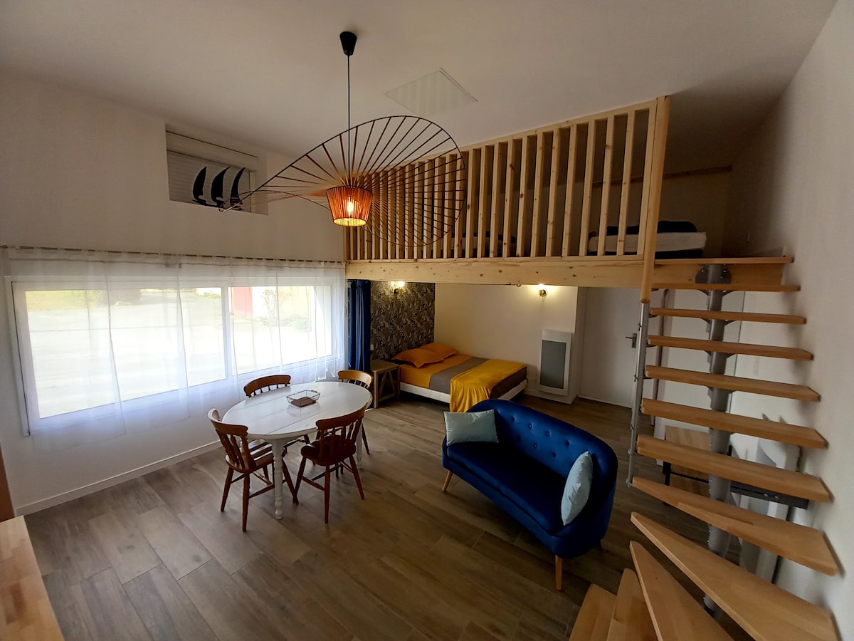 Loft joliment décoré, idéal pour une famille , qui se situe dans un petit village au calme et à proximité de la ville. Le logement se compose 1 mezzanine ( 1,30m sous plafond parfait pour les enfants) avec 3 couchages et la pièce de vie avec un coin nuit. Le gîte se trouve à 8 min seulement du Puy du Fou en voiture. Nous serons ravis de vous accueillir avec notre bonne humeur et nos sourires pour vous faire découvrir le beau bocage Vendéen. Parking et Wifi .