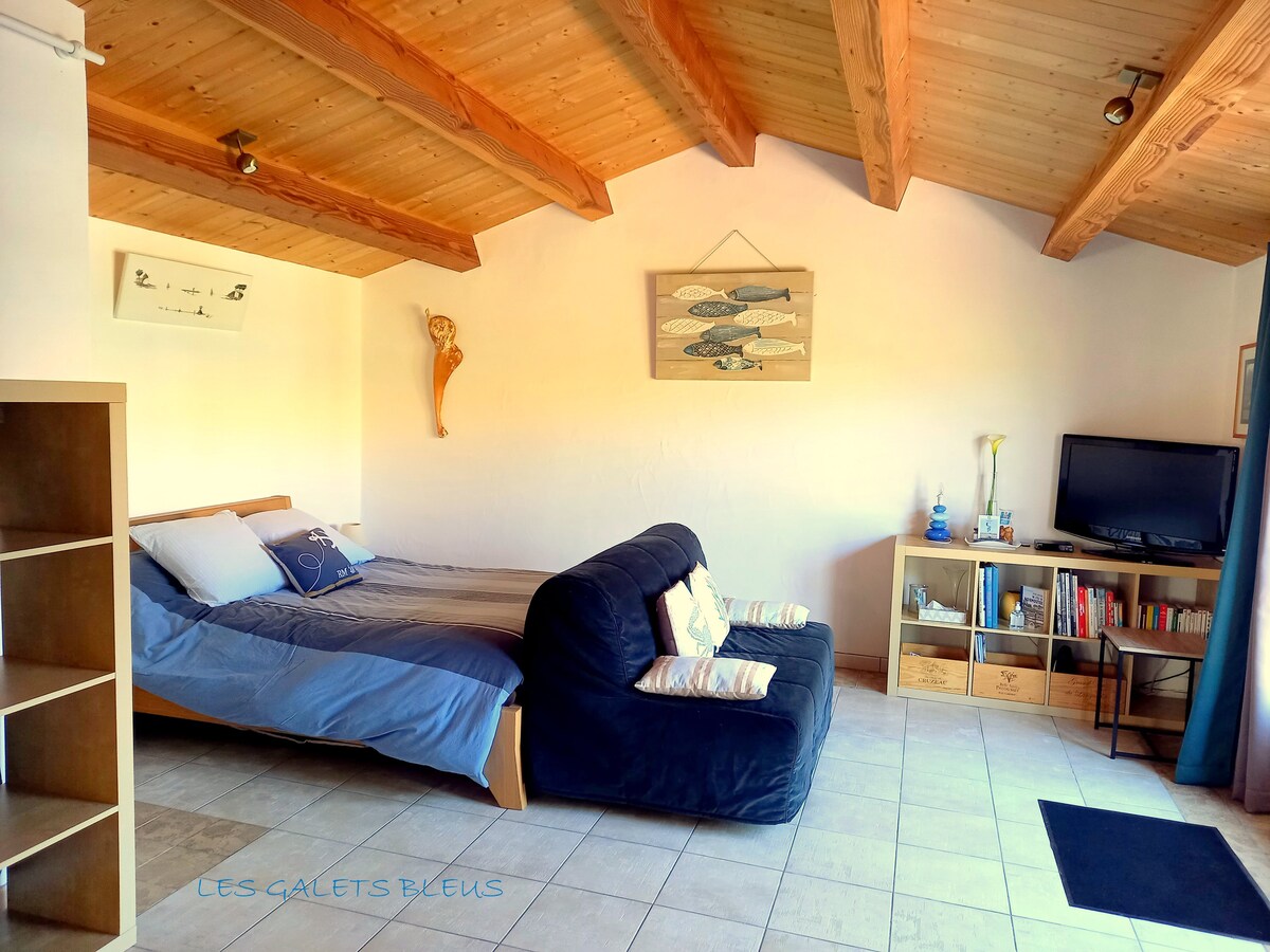 Logement de 30 m2 situé dans une voix sans issue , parking dans la cour. Il comprend un salon cuisine . Salon avec canapé-lit (160x200), Cuisine équipée (LV) Salle d'eau : lavabo, douche à l'italienne et sèche-serviettes, WC séparé. Petite terrasse avec table, chaises, transat et parasol. Il est situé à 3,5km du centre de Pornic, 3km des plages de Sainte Marie et 1km d'un centre commercial Linge de toilette et draps fournis Prêt de vélos sur demande