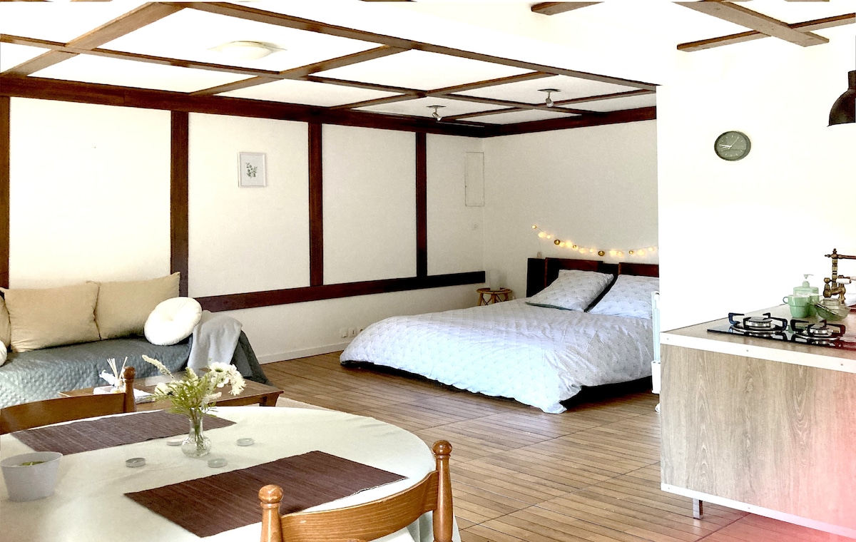 距离海滩10分钟的迷人绿色单间公寓