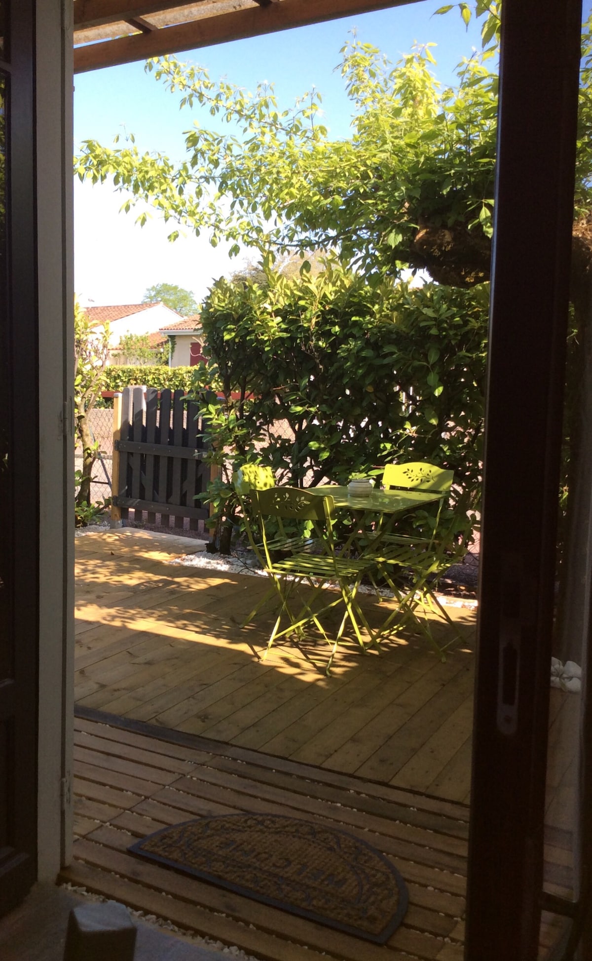 Modern, comfortable house with a south-facing garden offering complete privacy. Perfect for relaxing in a quiet neighborhood, 10 minutes from La Rochelle. The 50 m² (538 sq ft) accommodation includes a large living room with a double sofa bed, a fully equipped kitchen, a bathroom, a spacious bedroom with a double bed, a travel cot, and two private parking spaces. The house is decorated in a contemporary style, ideal for spending quality time with family or friends.