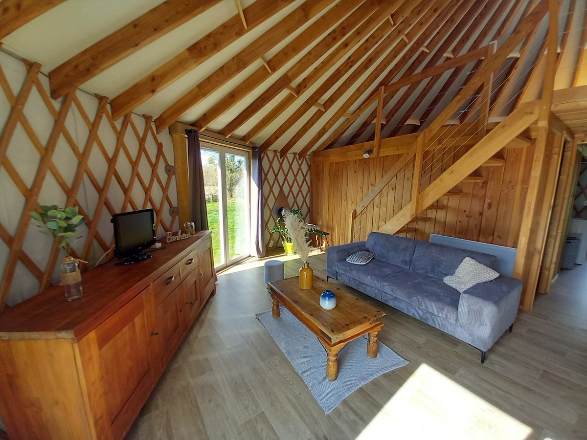 Dans un parc arboré de 8000m2, vous vivrez un séjour ressourçant dans la nature; nos voisins sont les vaches dans le pré d'à côté, les buses, les hérons, les écureuils, les grenouilles de la mare, les libellules...un lieu idéal pour se mettre au vert et retrouver le contact avec la nature! Nous avons à cœur de vous accueillir dans une yourte confortable, le nettoyage de la yourte et des sanitaires est soigné; un coin cuisine est à votre disposition, il est ouvert sur l'extérieur.