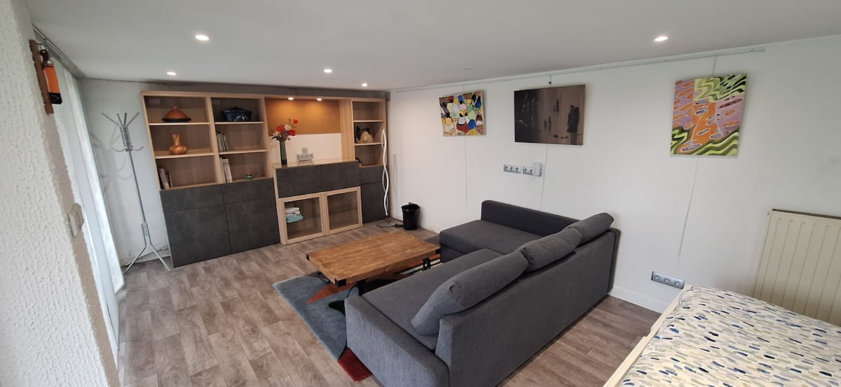 Enjoy a peaceful stay in this air-conditioned ground-floor apartment with a private terrace, ideal for relaxing. It includes a comfortable bedroom and a living room with a high-quality sofa bed. The owner lives upstairs: discreet, helpful, and available if needed. The owner's swimming pool is available (shared space). Located in a quiet location in the heart of Beaujolais, this little haven is perfect for a relaxing getaway combining nature and convenience.