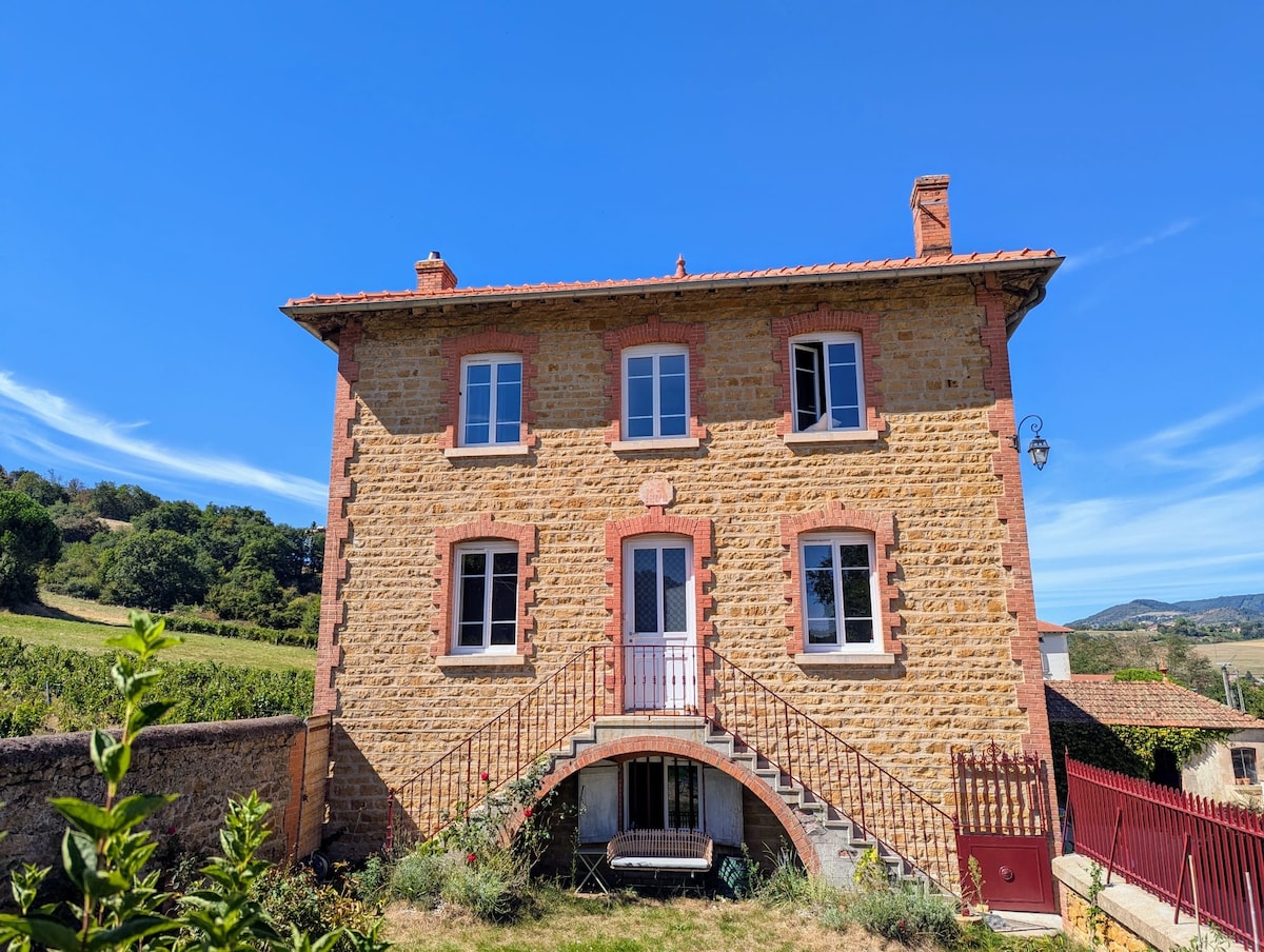 Situé dans un vieux corps de ferme ce vaste logement indépendant vous offrira calme, espace pour un séjour familial reposant. Idéalement situé à 30km de LYON ou saint ETIENNE près du point culminant des monts du lyonnais vous y découvrirez un panorama exceptionnel. Les levers de soleil sur la chaine des ALPES vous enchanteront .Vous profiterez soit du grand balcon soit du jardin clos à votre disposition. Ce grand logement est une structure idéale pour réunir plusieurs familles ou générations.