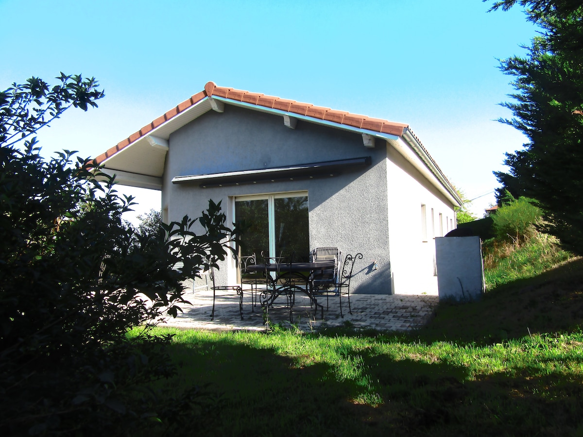 GITE pour 6/8 personnes, maison de plein pied, dans le parc du Pilat. 2 chambres avec lits doubles 140 et 1 avec lit en 120 + lit en 90. Chaque chambre a sa douche italienne et lavabo. possibilité de deux couchages en sus, car convertible lit 140 au salon. Terrasse tables, chaises, barbecue grill et plancha. A proximité des pistes de ski de fond du bessat. A 30 mn de Saint-Etienne et 50 mn de Lyon. Plusieurs sentiers de randonnées aux pieds de la maison. Terrasse ensoleillée.