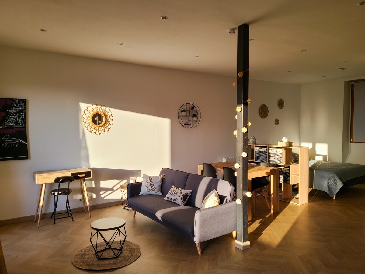 平均评分 5 分(满分 5 分),共 25 条评价舒适的单间公寓,33平方米,可欣赏Monts d'Or和里昂的美景