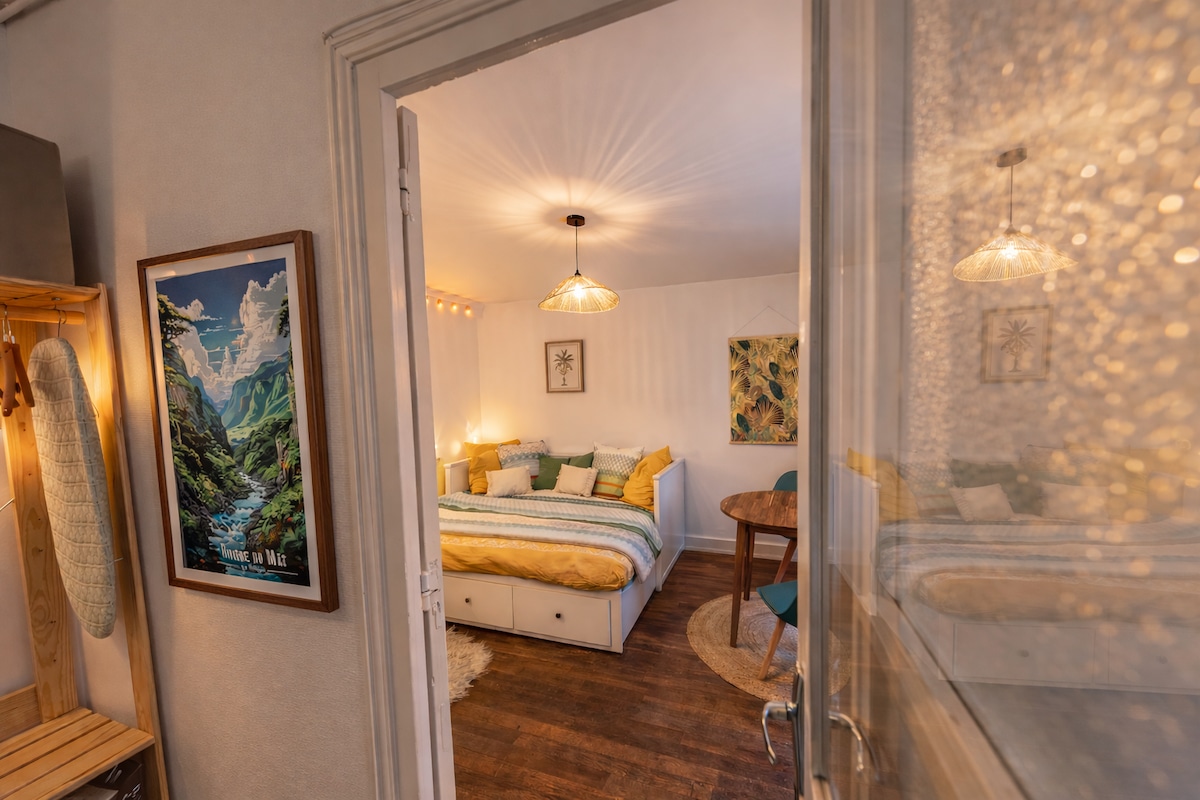 Une escapade unique et romantique au coeur d' Amboise ,sur les bords de Loire ,un espace atypique et authentique (creusé dans la roche au 16 ème siécle ) à la décoration design et à l' equipement moderne. Dans un esprit loft sur plusieurs niveaux : La salle de bain et sa BALNEO/JACUZZI pour un maximum de détente à 2 . Le salon équipé d' une TV connectée 65 pouces et barre de son performante. L 'espace nuit et son lit design pour une nuit confortable et enfin le coin repas .