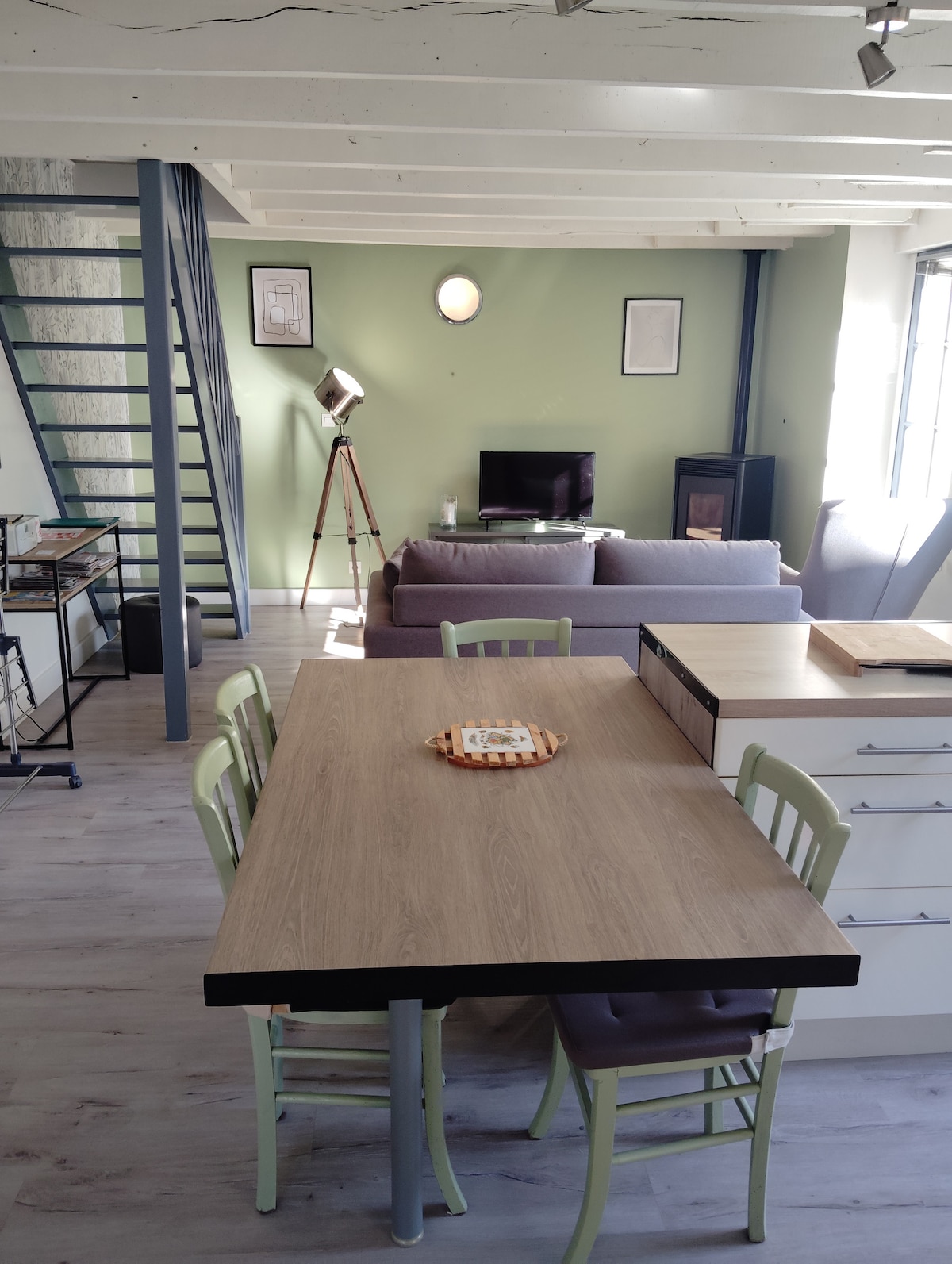 Maison de caractère Elégante fonctionnelle et au calme vous trouverez à tout l' équipement nécessaire Surface 60m2 pouvant accueillir de 1 à 5 personnes Pièce de vie/bureau/cuisine équipée/Chambre: 3 lits de 90*190 (adaptable)/1 canapé convertible/ salle de bain/WC/terrasse de 45m²/parking/TV/wifi gratuit. Linge de lit et de serviettes de toilette fournis Situé à 30mn d'Angers/20mn d'Ancenis/1h de Nantes/20mn de Segré/10mn de la Gare d'Ingrandes sur Loire, Commodités à 2mn Logement non fumeur