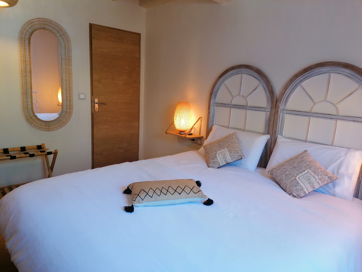 Laissez-vous séduire par cet adorable hébergement. Dans une grande maison ancienne, chambre privée de 20m² au sol ( sous les combles) , ventilateur. Jardin clos de 500m² arboré avec terrasse semi-ombragée par un eucalyptus. La maison accueille aussi un petit chien très gentil et très joueur.