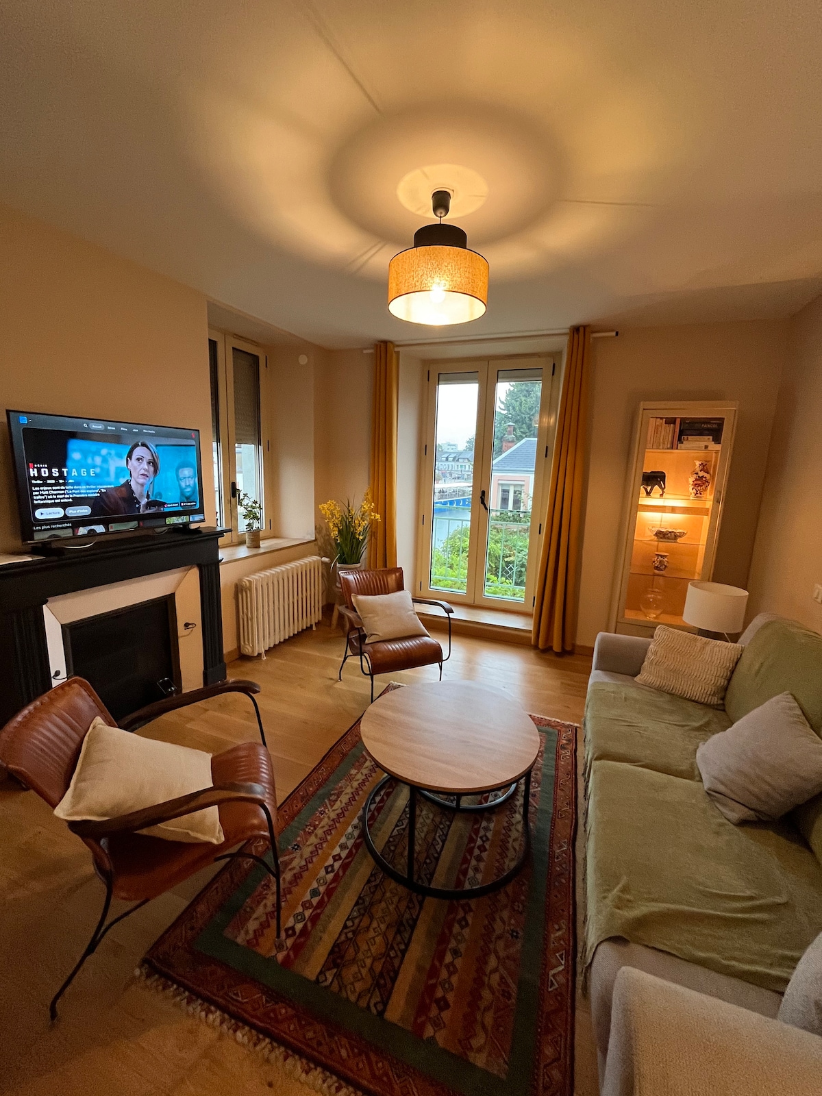 logement paisible a - de 10 min à pied du centre) Au n 24. Une place de parking .Lumineux ,refait à neuf. ( cave si vélo). À proximité de la Loire et de son circuit vélo. Appartement dans un petit immeuble qui n’est pas récent, donc parfois bruyant mais il est très bien entretenu. un espace vert est à l’arrière. Prêt de Chambord, entre Orleans et Blois. Beaucoup à faire Une borne de rechargement pour véhicules électriques ce trouve sur le parking du Lidl qui est à moins de 3 min du logement