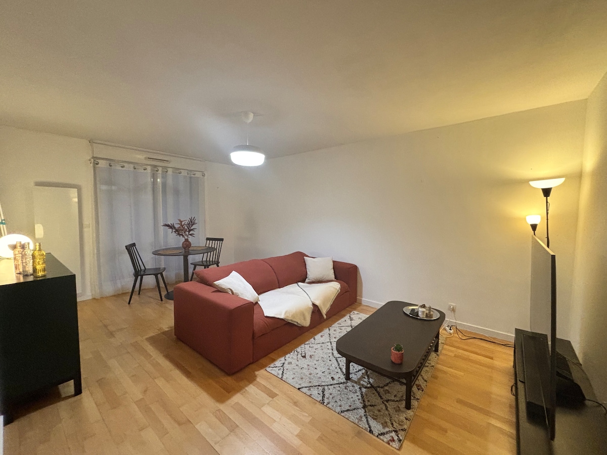 -Appartement en rez de chaussée, balcon, place de parking souterrain ! -Cuisine récente et moderne, bien équipée, éléments neufs, cafetiere a filtres, bouilloire. Café, thé, sucre a dispo.. -Salle de bain avec serviettes, gel douche, shampooing, coton, produits, lessive.. -Chambre, lit 2metres, draps, couverture coussins, grande armoire penderie, fer a repasser, aspirateur 🛄 Heures d'arrivée et depart flexible 🛜 Wifi