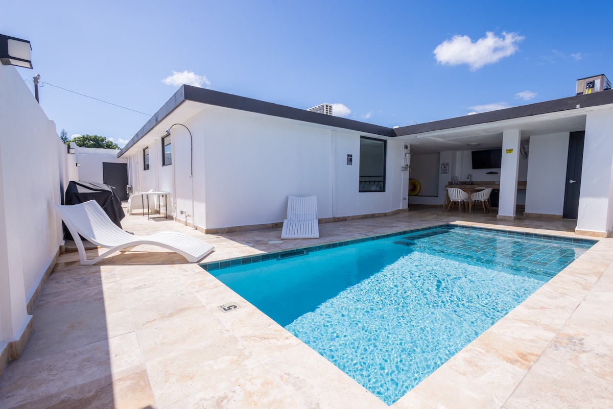 Modern home with private pool, perfect to spend a few days on vacation. It has 3 bedrooms, each with a queen size bed, tv, and A/C. A dedicated work space, a spacious living room and kitchen. You will have an outdoor dinning area and a gazebo to relax next to the pool. Your family will be close to everything when you stay at this centrally-located place. Less than 10 mins from the airport and 12 -15 from popular areas like Old San Juan, Condado and Isla Verde , Malls, outlets and Markets.