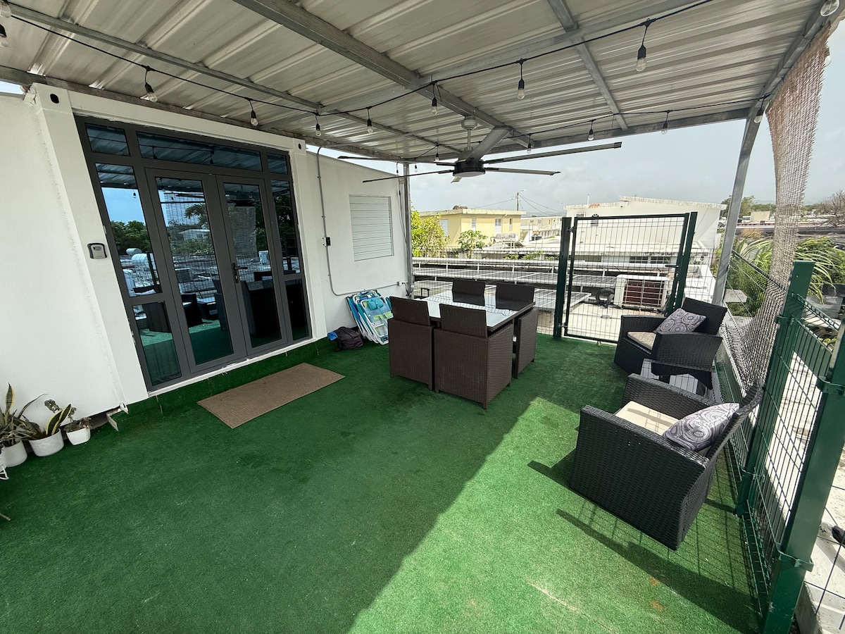 Experience your perfect Puerto Rican vacation, located 10 mins from the San Juan Airport. Our eco-friendly, second-story apartment is solar-powered with a backup, 2 air-conditioned bedrooms, a bathroom, and inviting outdoor space with seamless 24hr self-check-in. Explore nearby attractions like Hacienda Campo Rico, and the Children's Museum. Visit concerts at the José Miguel Agrelot Coliseum, beaches, El Yunque Rainforest, and Isla Verde, just 20 minutes away. Parking for upto 2 available.