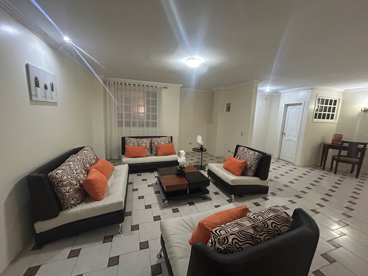Disfruta de la sencillez de este alojamiento tranquilo y céntrico; un departamento amplio y muy acogedor, con excelente iluminación y ventilación natural. El departamento dispone de lo necesario para garantizar una estadía cómoda y agradable. Se ubica en un sector privilegiado que cuenta con todos los servicios (transporte público, locales comerciales, restaurantes, gimnasios, senderos, centros de salud, hospitales, farmacias, bancos, cajeros automáticos, etc).