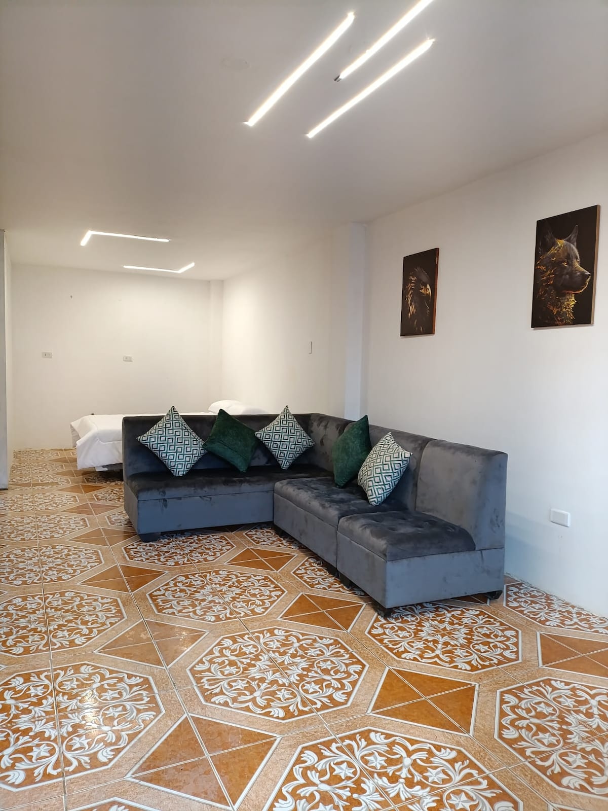 Vive Loja desde las alturas con confort inteligente Disfruta de una experiencia moderna y cómoda en este elegante loft con domótica Alexa, ubicado en el corazón de Loja, a pocos minutos del centro histórico y rodeado de cultura, gastronomía y naturaleza. Alexa : enciende luces, reproduce música, agenda recordatorios o controla la TV solo con tu voz. Vista panorámica WiFi: 350Mbps Parqueadero privado gratuito (solo noche) Ingreso autónomo y seguro 24/7 Mascotas pequenas con aviso previo.