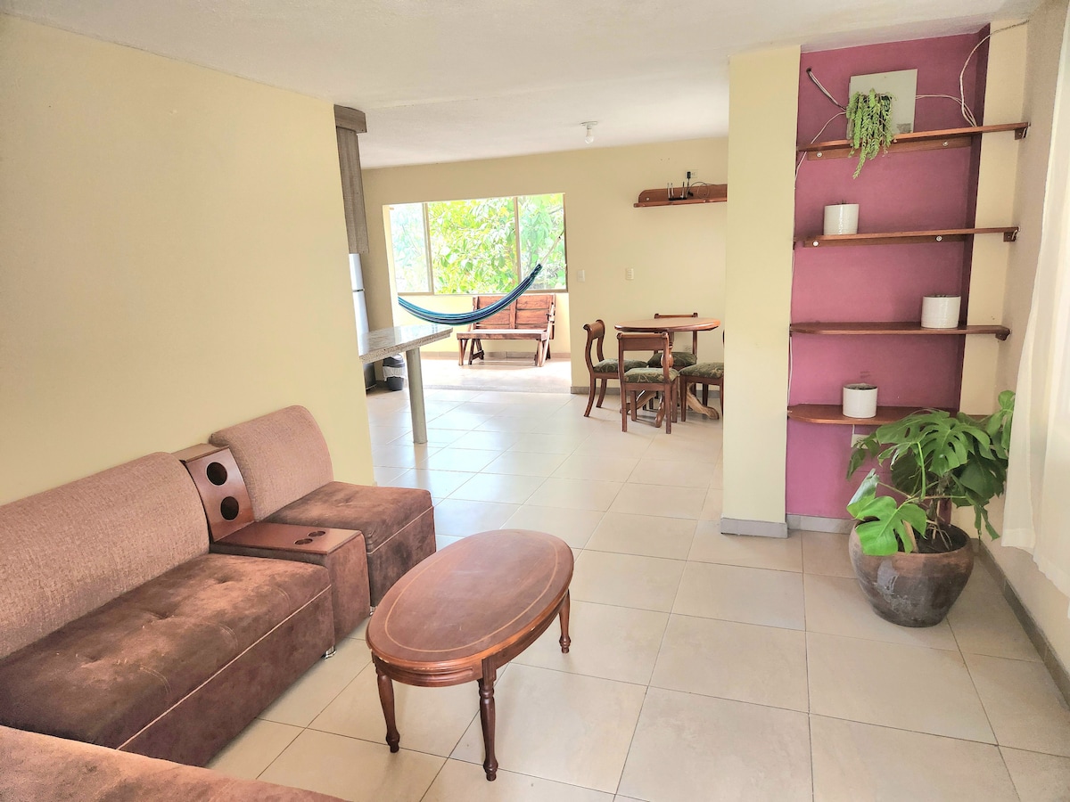 Este espacio esta en una excelente ubicación, tiene amplios lugares para disfrutar en familia, vistas hermosas del Valle de Ceibopamba. Su acceso es independiente y llega hasta la casa, puedes acceder con tu vehículo. Es un lugar donde podrás descansar por completo, con sonidos de pájaros, y si quieres puedes tomar una siesta en los pasillos en hamacas.