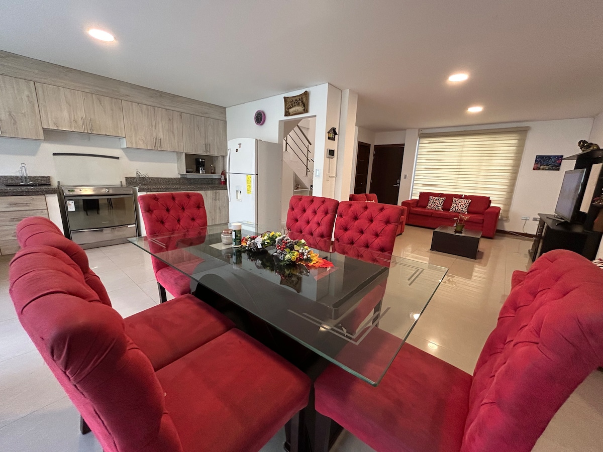 🏠 Smart HouseThe area is very quiet and close to strategic sites in the City 🚗It has private parking accessible 24 hours (inside the house) 📍5 minutes from the Terminal Terrestre 📍6 minutes from UTPL 📍3 minutes from the Theatre Rustic and minimalist theme with home automation systems that offer comfort and advanced technology (sound and voice control) It has a living room, dining room, kitchen, washer, dryer, three bedrooms and 2 full bathrooms, outdoor area with jacuzzi
