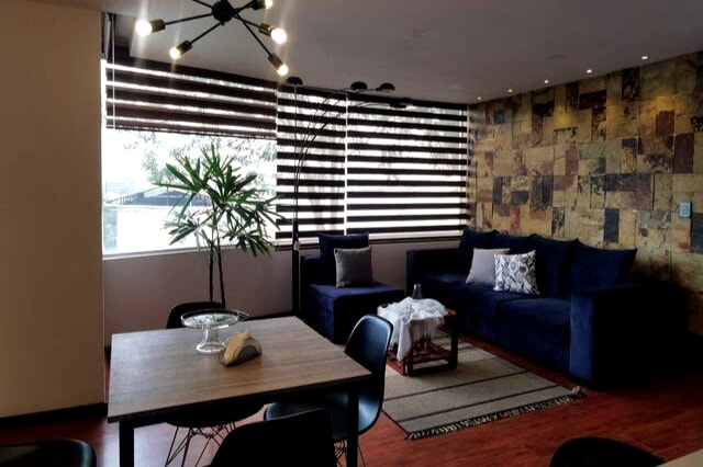 Hermoso departamento, ubicado en una zona residencial, cerca al centro de la ciudad, parques, paradas de transporte, centros comerciales, universidad. El departamento consta de dos habitaciones con tres camas y dos sofá camas, apto para 5 personas. Parqueo gratis para un vehiculo. Cocina totalmente equipada para su uso cotidiano posee todas las comodidades, como agua caliente, televisión, Internet, Netflix, consola de video juegos, Alexa.