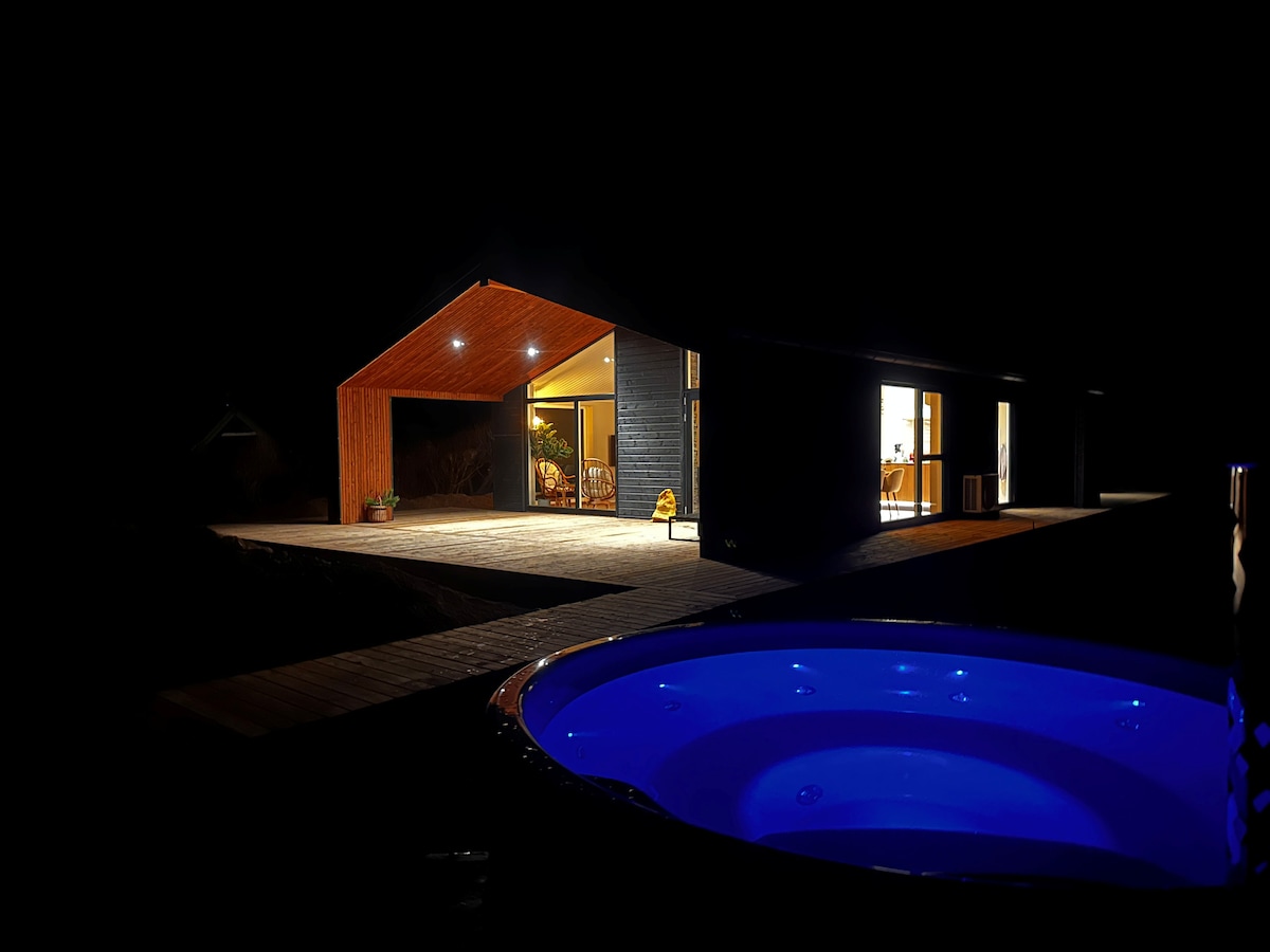 带桑拿、水疗和野外浴缸的舒适度假屋