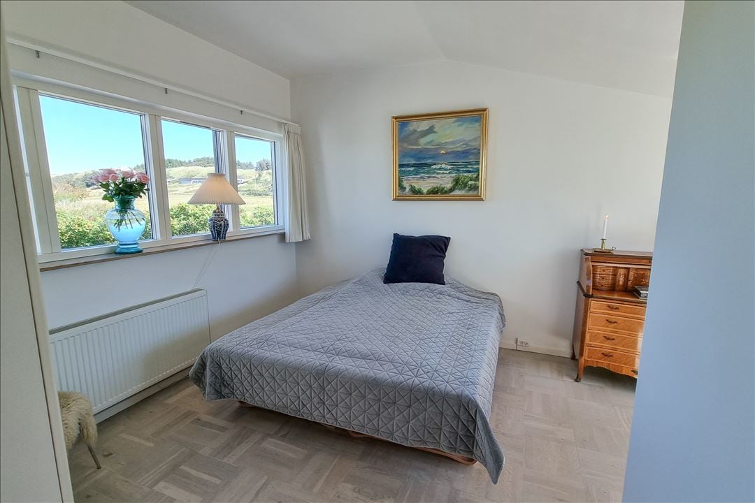 Charmerende retroindrettet sommerhus med betagende havudsigt. Nyd solnedgangen over klitterne fra det åbne køkkenalrum. Store vinduer giver lys, udsyn. Eller slap af en kold vinterdag foran brændeovnen og se ud over det brusende Vesterhav. Stue med hyggelige sovealkover, inkl. havudsigt. 2 soveværelser, badeværelse samt hems med plads til 2 ekstra personer. Bemærk: Prisen er ekskl. rengøring: 700 DKK ved ophold over 3 døgn ellers 500 DKK ved ophold under 3 døgn. Betales ved afrejse.