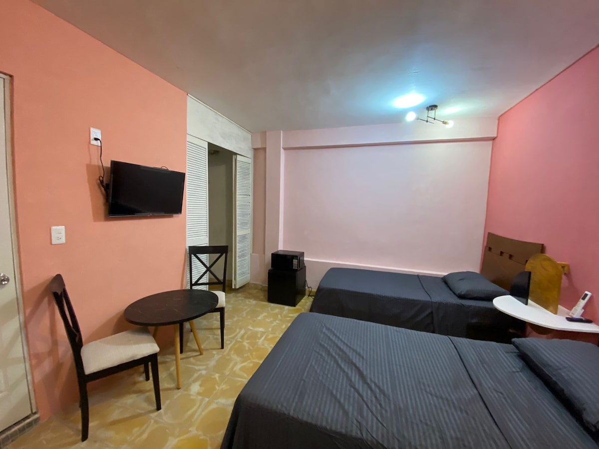 Habitación con cama matrimonial, acogedora con decoración industrial moderna, cuenta con baño propio, barra para cocinar equipada con frigobar, parrilla eléctrica, microondas, utensilios de cocina, sal, pimienta y aceite, la habitación también cuenta con tv de 40” con netflix, wifi y aire acondicionado frío/calor, el acceso es mediante una cerradura electrónica con clave. Disfruta de la privacidad y confort que ofrece esta habitación.