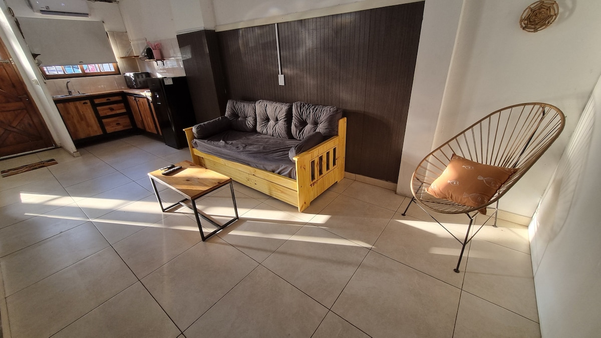 Disfrutá de la sencillez de este alojamiento tranquilo y céntrico, diseñado para que puedas escapar de la rutina y relajarte en un ambiente cálido y acogedor. Nuestro pequeño hogar a estrenar es el lugar perfecto para descansar, reencontrarse con los seres queridos, enamorarse más, rejuvenecer y recargar energías. Disfruta de un sueño reparador, en un ambiente climatizado y con cortinas black out. TV e internet Wi-Fi de alta velocidad para entretenerte o trabajar. A pasos de Las Lomitas.