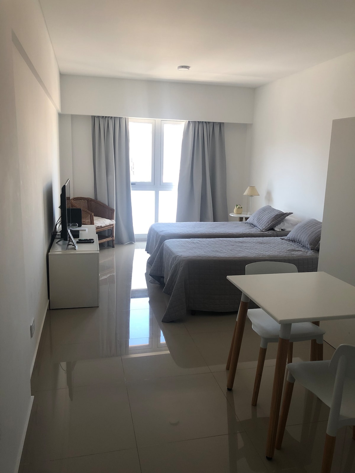 Brand new two rooms apartment. Fully furnished and equipped. In the fanciest neighbourhood of Buenos Aires: Puerto Madero . Located on the 12th floor has an amazing view to the river and the city skyline. It is quiet and comfortable. The area is safe and full of restaurants and sights worth visiting. The location is very convenient. It is within walking distance from Plaza de Mayo. This neuralgic point of Buenos Aires is connected by several public transportation means to the rest of the city.