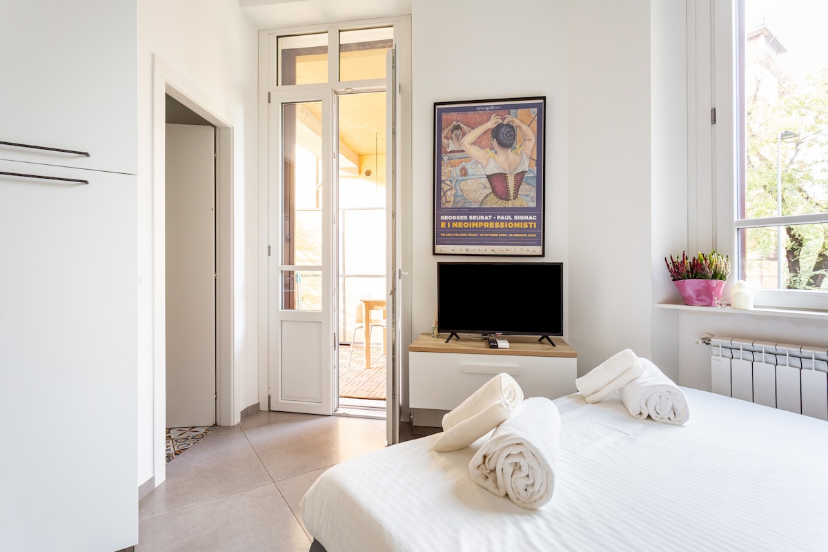 A stylish, bright loft ideal for travelling people, professionals/remote workers and leisure guests alike. 60 sqm with exposed beams and private terrace. Very fast Wi-Fi 1 Gbps fiber, large table desk, comfortable workspace, AC and modern comforts. Situated in a trendy, cosmopolitan area, full of Art Nouveau architecture, independent cafés, design bars, and international restaurants. Just a few minutes walk from Corso Buenos Aires, one of the longest shopping streets in Europe.