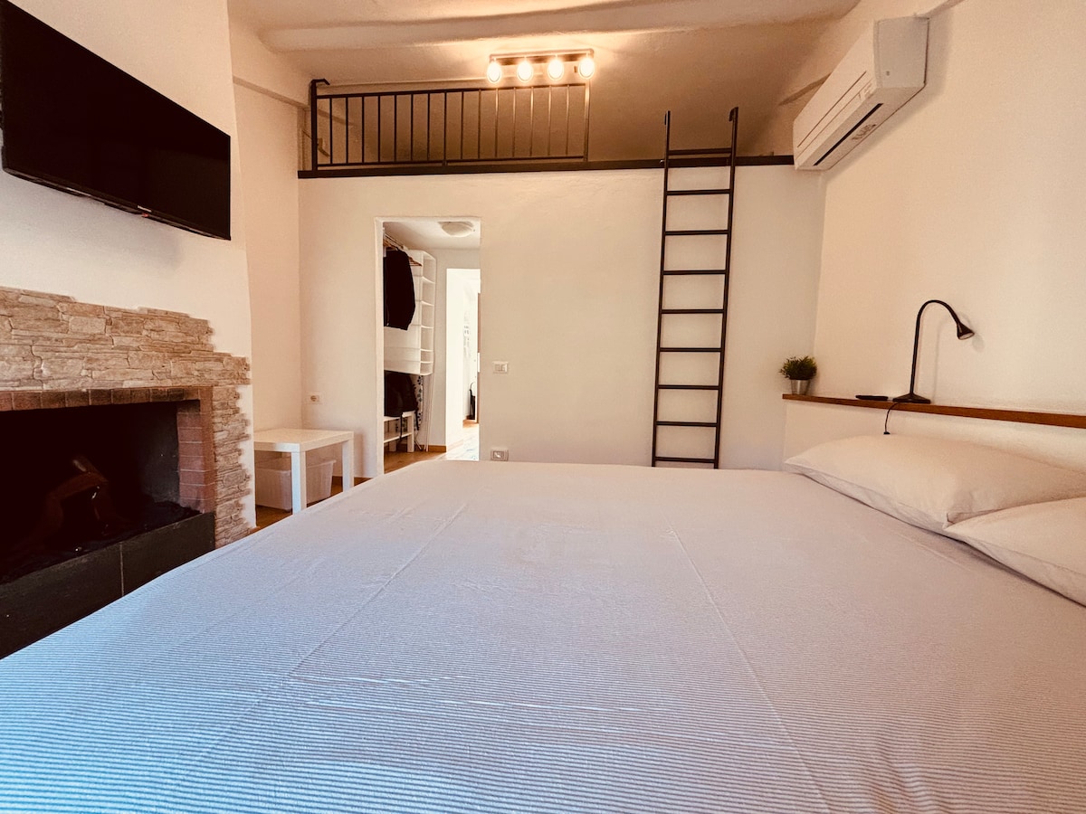 Accogliente mansarda di 28 mq, adatta a una sola persona. Comoda per le sedi dei GIOCHI OLIMPICI. Un rifugio non convenzionale, immerso in un’atmosfera arricchita da opere di arte contemporanea. Ideale per viaggiatori solitari, sia per lavoro che per turismo. Non c’è cucina, ma sono disponibili Nespresso e bollitore. La doccia, dal design particolare ma comoda, è pensata per essere usata da seduti. ********** Nota: Sono in corso lavori di ristrutturazione nel cortile.