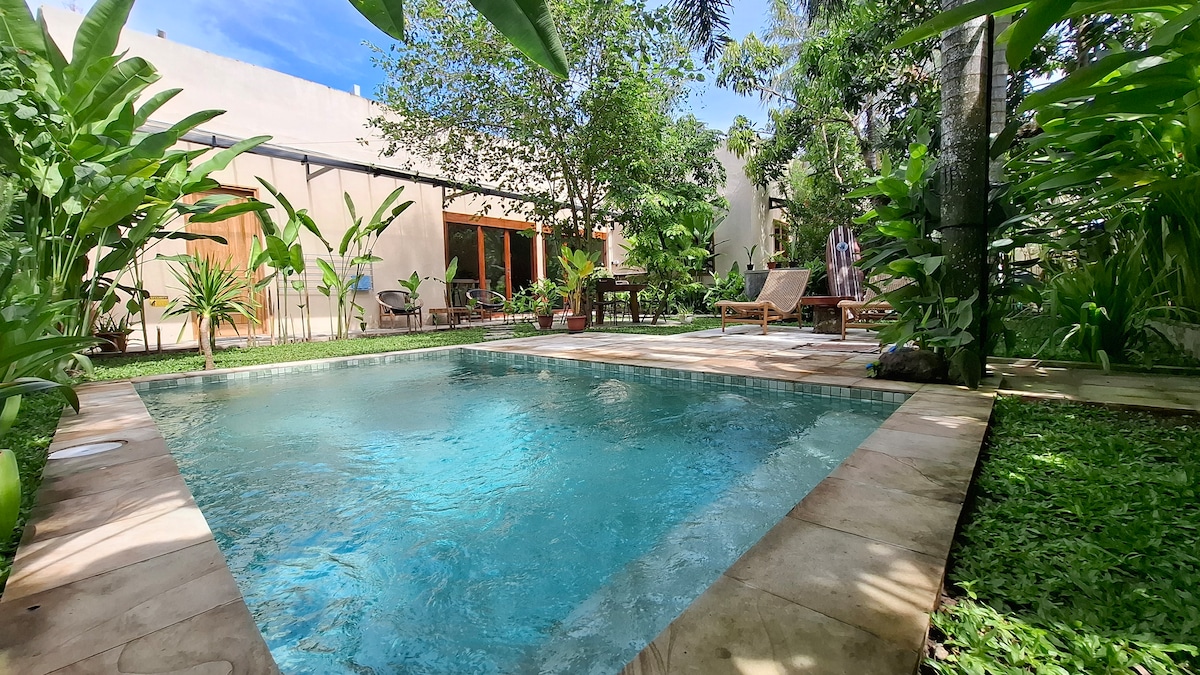 ✨ Unwind at Villa Kotak – a peaceful 2BR villa with 1.5 baths, full AC and private pool. Just a 7-min stroll to the white sands of Selong Belanak, a laid-back beach loved by surfers of all levels. Enjoy slow mornings on the cozy patio, refresh under the outdoor shower, or connect with ease using fast WiFi. Cafés, local restaurants and spas are within walking distance. Weekly cleaning included. Our villa supervisor is on hand to help with any requests, ensuring a smooth and carefree stay.