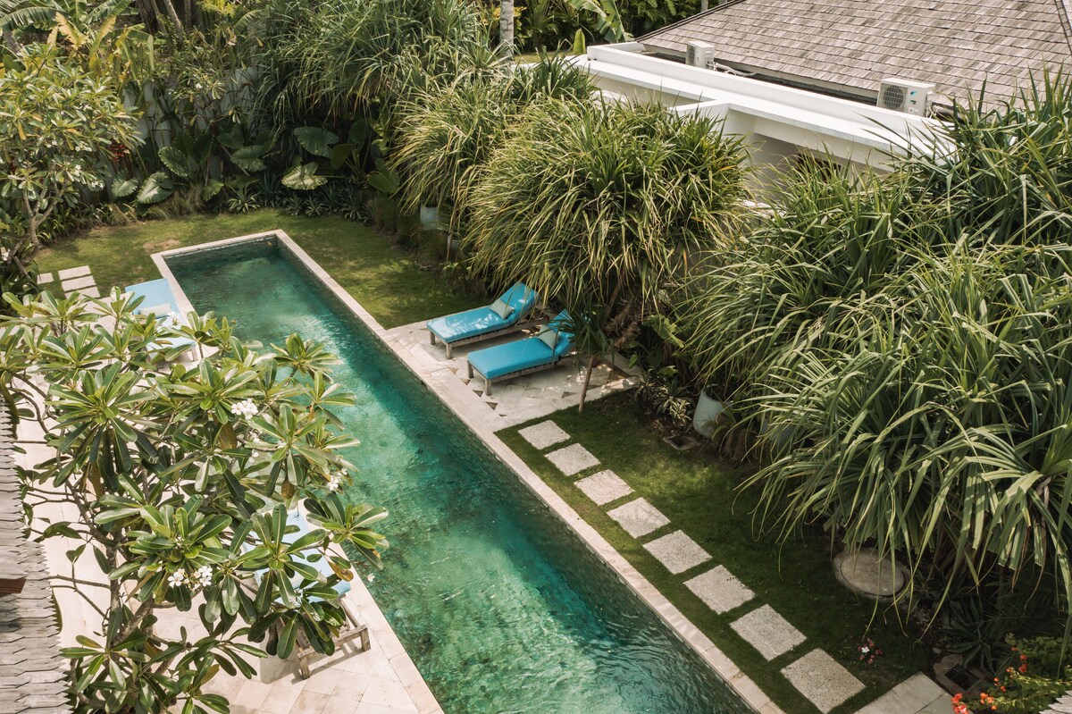 Special promo - construction close by Step into the brand-new and luxurious 1BR villa nestled in a serene area in the heart of Kuta. Tias Villas is a relaxing retreat close to all restaurants, shops, beaches, gyms and yoga studios. Explore the magical surroundings or lounge the day away in the tropical garden next to the private swimming pool. ✔ 1 Comfortable King Bedroom ✔ Fully equipped Kitchen ✔ Garden with private pool ✔ Workspace ✔ High-Speed Wi-Fi ✔ Free Xeno-Gym Access (300m from Villa)