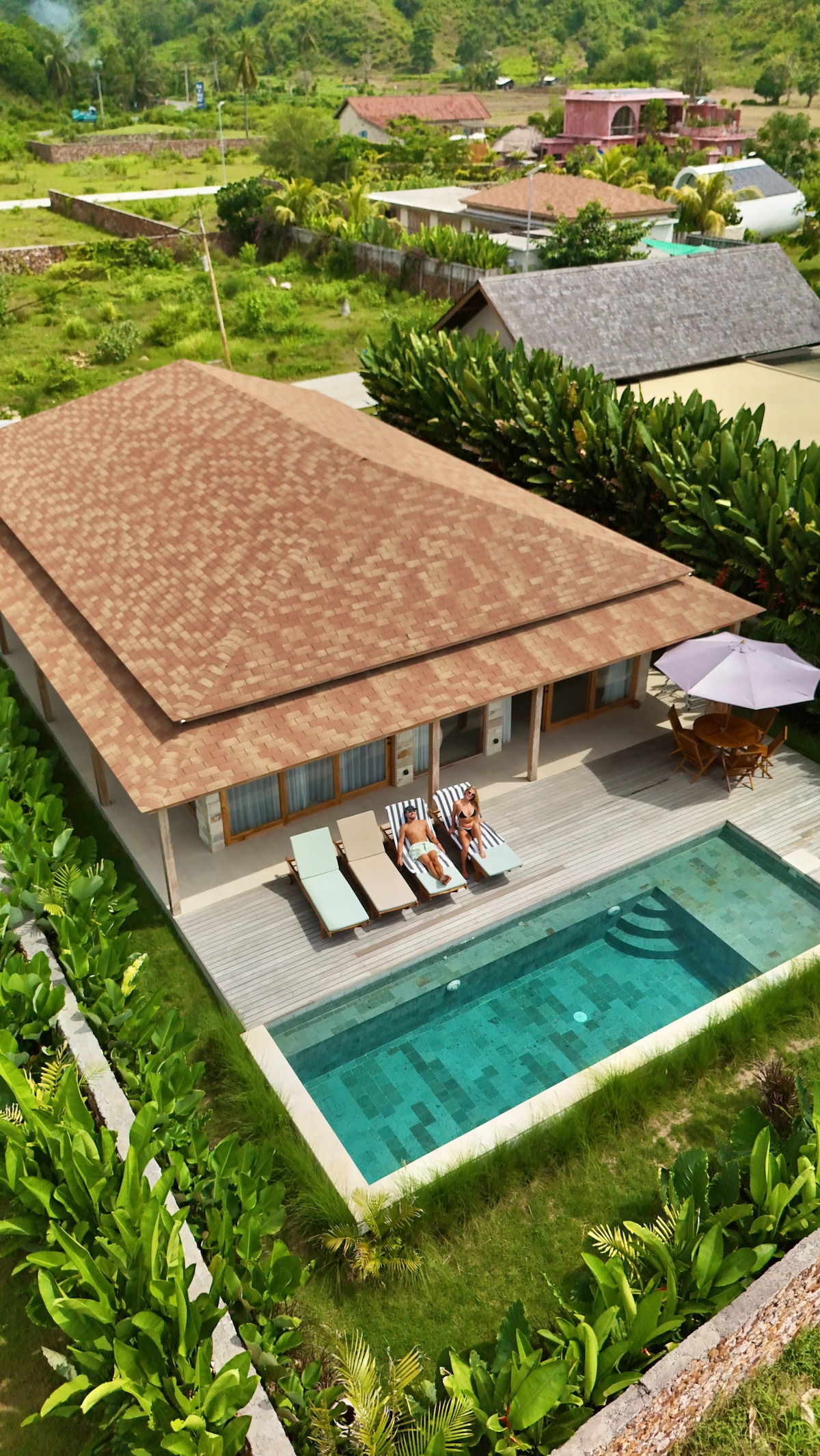 Villa Malolo is a 3br tropical paradise located in Kuta, Lombok. Villa has a big swimming pool, fully equipped kitchen, 3 separated bedrooms with private outdoor bathrooms, and an outdoor living room. Also, one of the rooms is set up with a bathtub, so you can have a perfect and relaxing getaway here. Villa Malolo is located in the center of Kuta, yet it is quiet here, the main street with cafes and shops is just 5 minutes walking distance and the closest beach is 15 min walking distance.