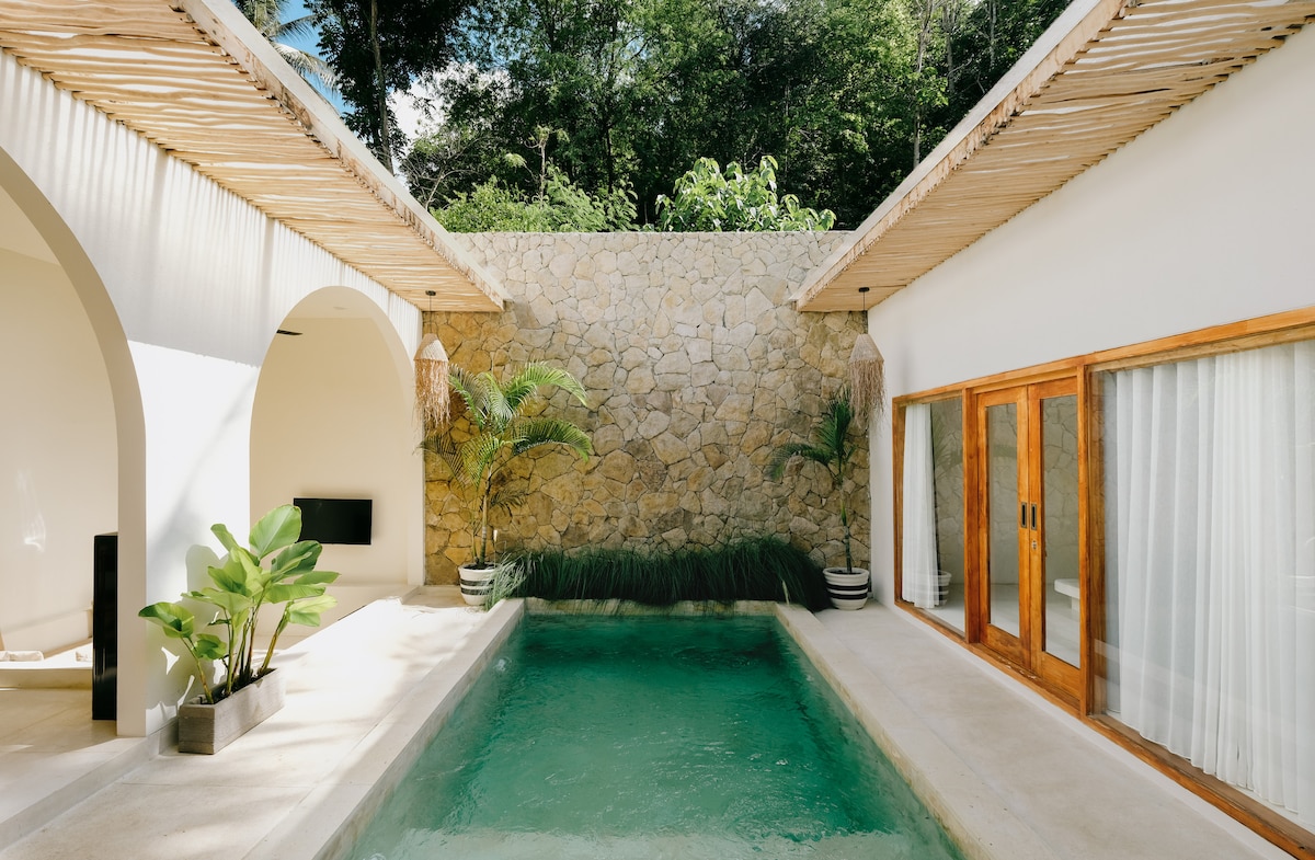 Special promo - construction close by Step into the brand-new and luxurious 1BR villa nestled in a serene area in the heart of Kuta. Tias Villas is a relaxing retreat close to all restaurants, shops, beaches, gyms and yoga studios. Explore the magical surroundings or lounge the day away in the tropical garden next to the private swimming pool. ✔ 1 Comfortable King Bedroom ✔ Fully equipped Kitchen ✔ Garden with private pool ✔ Workspace ✔ High-Speed Wi-Fi ✔ Free Xeno-Gym Access (300m from Villa)