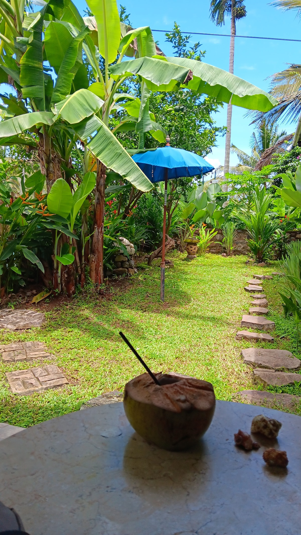 2 bedroom house with separate kitchen with a garden surrounded by coconut trees hill. 5 minutes on walk to Setangi beach (surf). private main road access. 1 kms from the Setangi village and shops Very quiet and safe area. 5 minutes to snorkeling spot at Nipah beach, mangsit beach ( snorkeling and surf), Klui beach (surf). Near Hotel Royal Avilla 5 minutes to Verve beach club 10 minutes from senggigi