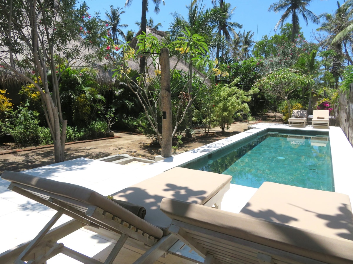 Villa Palma is a charming, cozy hotel with three independent bungalows, each with a private swimming pool surrounded by a tropical garden. Made with wood and natural materials, the rooms are inspired by the traditional construction of the island of Lombok, known as Lumbung. Set in a grove of coconut trees, Villa Palma is a blend of authenticity and comfort to provide you with an unique and relaxing experience in the delightful island of Gili Meno!