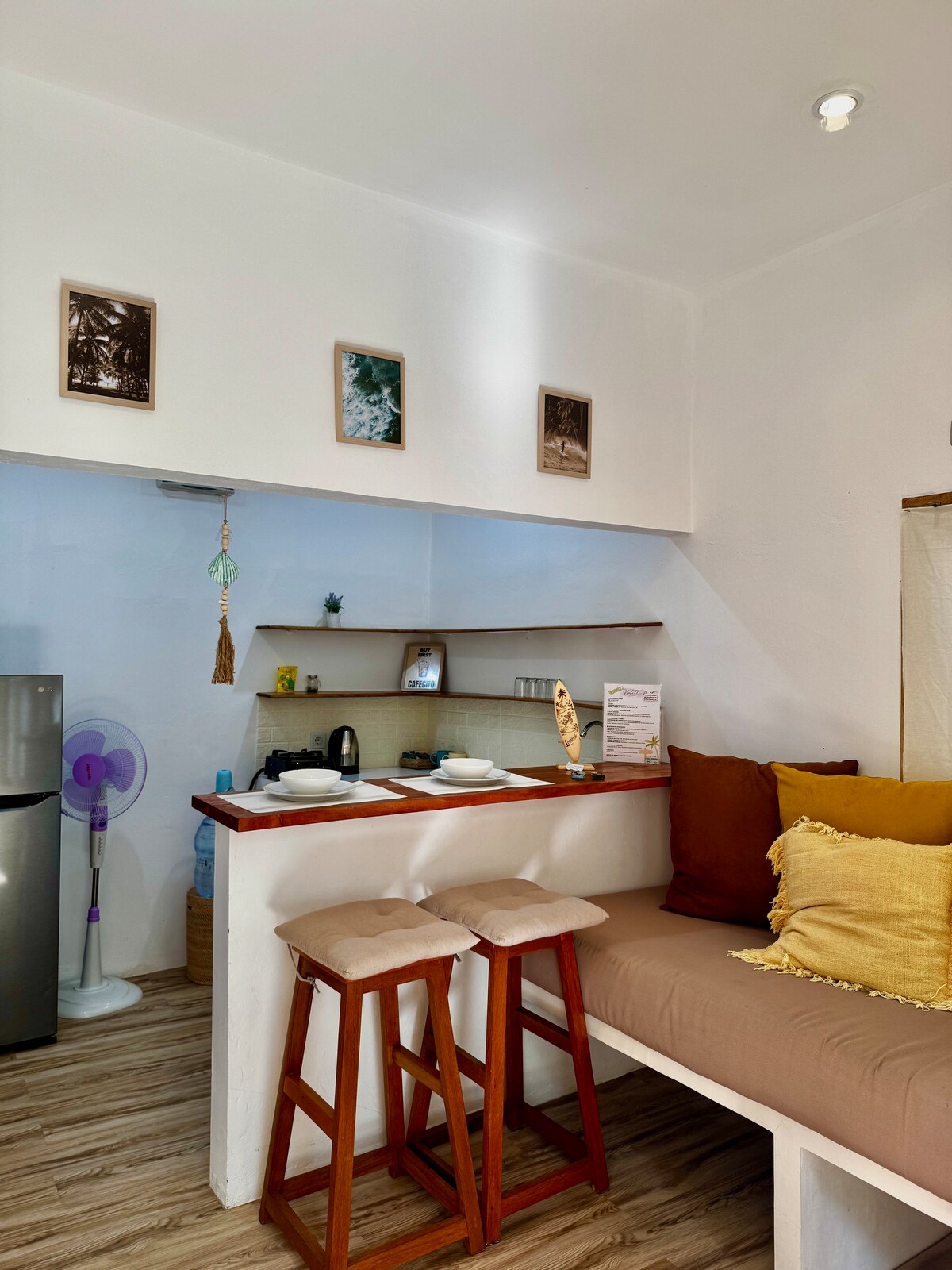 Surf-inspired villa just minutes from Kuta Lombok’s best beaches and breaks. Whether you're chasing waves or chasing sunsets, this 1 bedroom villa is designed for easy island living with zero stress. Enjoy a stylish open-plan villa featuring: - A private pool with sun loungers - Comfy king-sized bed - AC in the bedroom - Fast Wi-Fi and a Smart TV - Well-equipped kitchenette + coffee machine - Modern minimalist design - Perfect for surfers, couples, or solo travelers - Centrally located