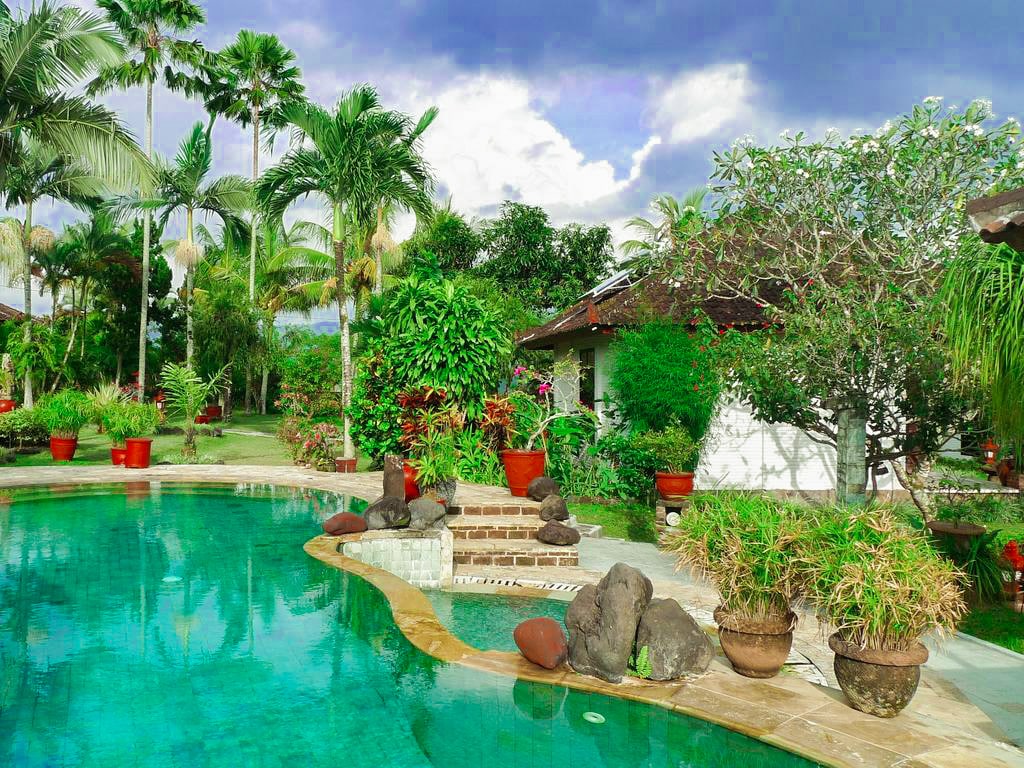 A petite rustic island-style studio, with a westward facing terrace combined living space that offers a view of the open fields and the sun setting over Bali. A unique listing, located inside the loft of the Balinese joglo at Lost Paradise. (We only have one room of this type.) The sleeping part of the loft is air-conditioned, houses a queen sized bed, and has a fresh hot water, open air bathroom. From 7:00 A.M., we serve an à la carte breakfast, discounted for in-house guests.