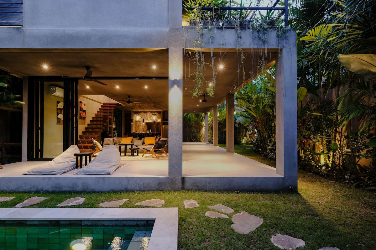 Step into the brand-new and luxurious 3BR villa nestled in a serene area in the heart of Kuta. Jaman Villas is a relaxing close to all restaurants, shops, beaches, gyms and yoga studios. Enjoy this brand-new design villa, set in a quiet area yet just minutes away from Kuta’s best beaches and close to the centre with restaurants, cafés, yoga center, etc. •Spacious & bright open-plan living room with floor-to-ceiling windows. •Fully equipped kitchen •Private pool & sun deck with wooden sunbeds.
