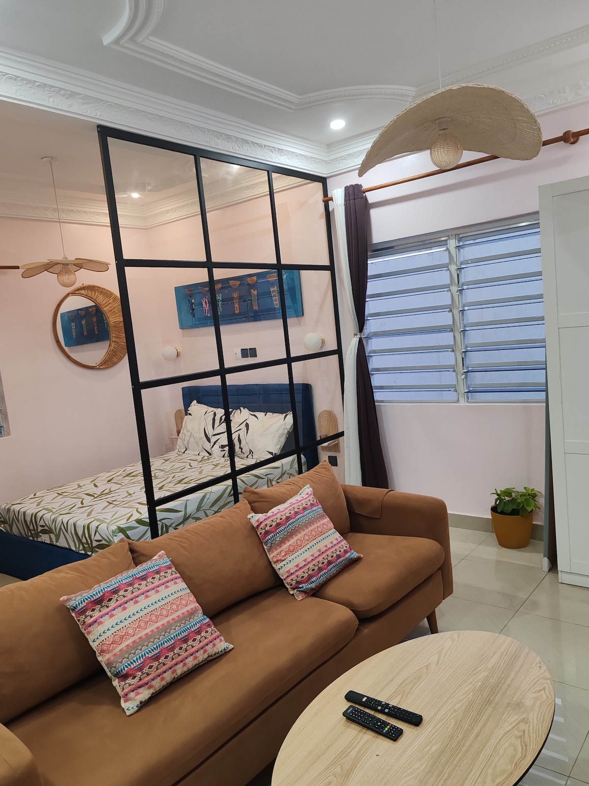 À 15 min du centre-ville (Tokoin Hôpital), ce studio élégant et tout équipé offre confort et praticité. Il dispose d’une cuisine séparée entièrement équipée, d’un espace de vie décoré avec goût et de toutes les commodités : climatisation, Wi-Fi et literie confortable. Situé dans un quartier calme et proche des commerces, c’est l’endroit idéal pour un séjour agréable, que vous soyez en voyage d’affaires ou touristique.