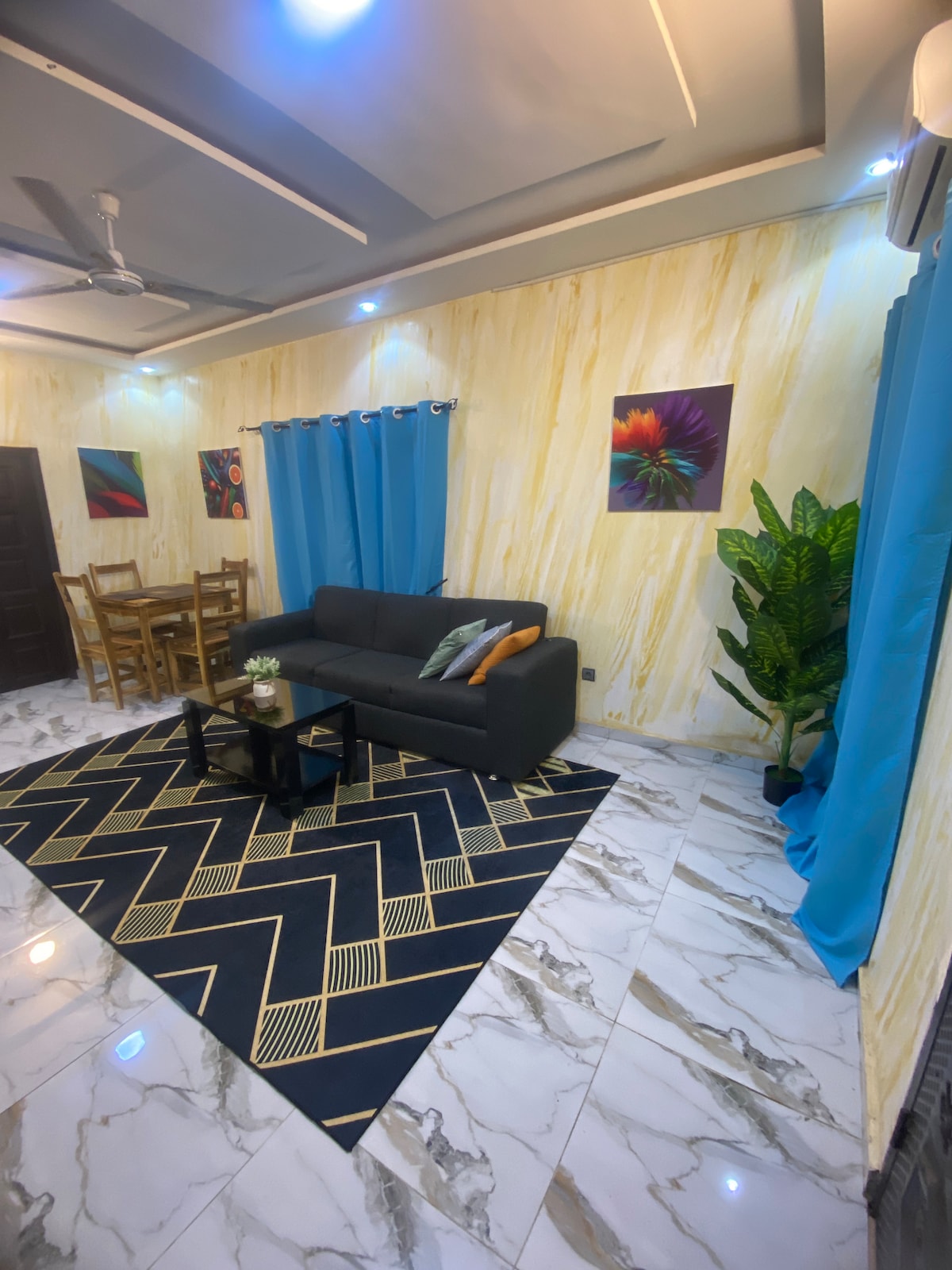 Détendez-vous dans ce logement meublé calme et élégant. Cet appartement est situé à Hedjranawe à 3 minutes de l’aéroport. Composé de 3 pièces dont 2 chambres, il peut accueillir jusqu’à 4 personnes. Cet appartement très lumineux et très calme au 1er étage, bénéficie d'une terrasse, d'une vue dégagée et de l'équipement nécessaire pour un séjour Togolais réussi. Garage personnel, Internet,gaz,entretien,abonnement a toutes les chaînes, films, séries et entretien inclus.