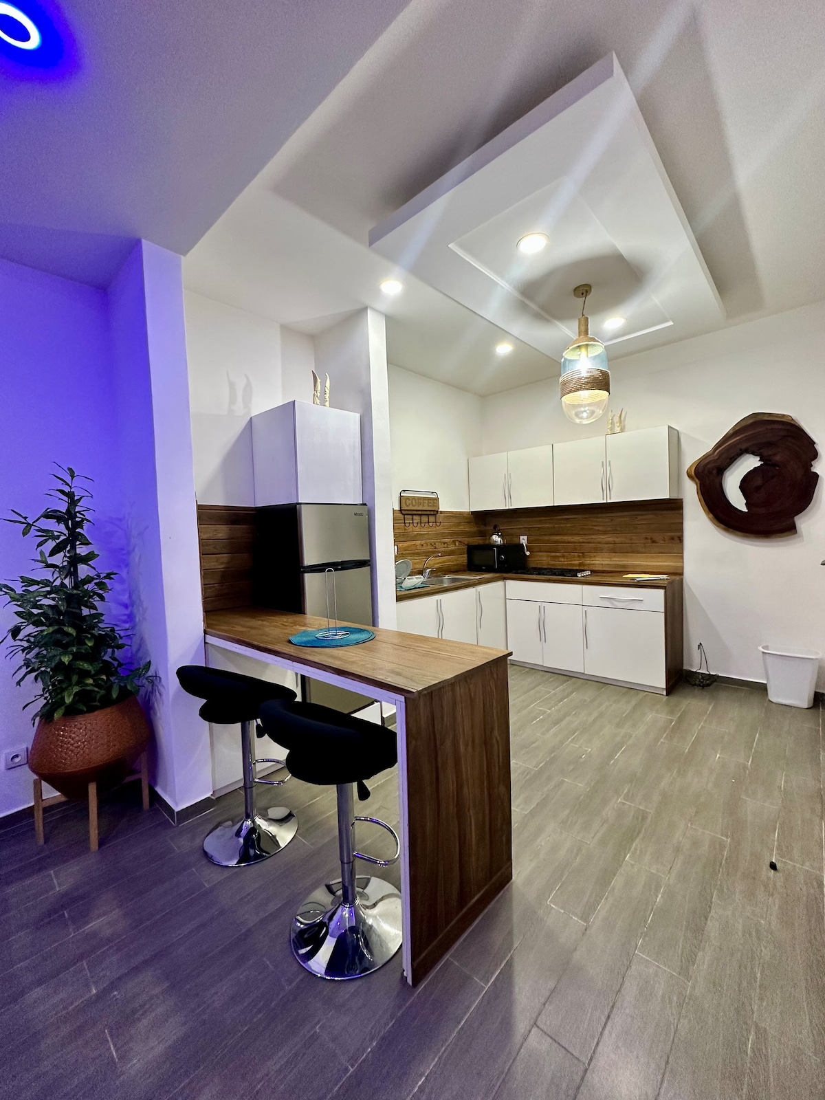 Blandine’s Little Heaven – Un Havre de Paix à Lomé Nichée à quelques pas de la plage, Blandine’s Little Heaven est une résidence exclusive offrant deux hébergements indépendants : une tiny house au charme cosy et une mini villa élégante et spacieuse. Vous profiterez d’un jardin luxuriant et d’une piscine partagée, parfaits pour se détendre dans un cadre paisible et verdoyant. Idéalement située de toutes les commodités , vous garantissant un séjour alliant confort, sérénité et accessibilité.