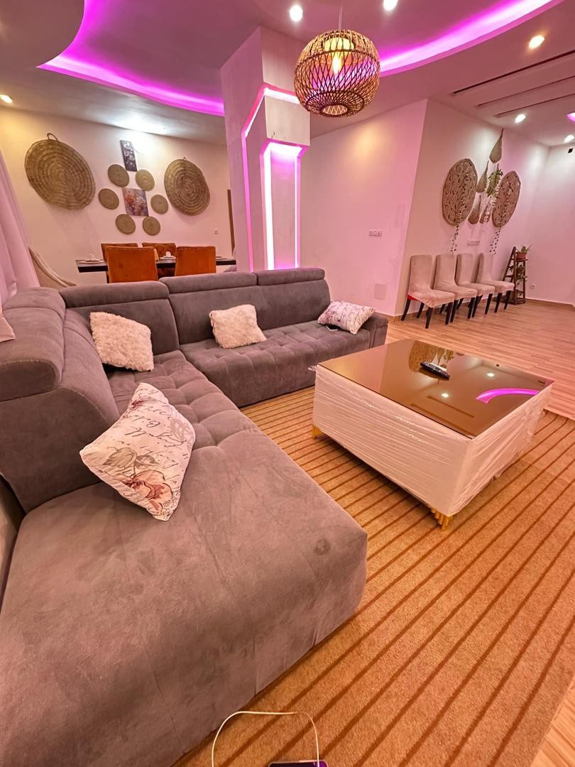 Cet hébergement élégant est parfait pour une famille, des groupes d’amis ou des personnes nombreuses. La maison dispose d’un salon bien équipé,salle à manger,cuisine, terrasse,cours, et 5 chambres avec leurs sanitaires. Nb:toutes les chambres sont bien climatisées: Nous louons aussi des voitures à un prix très intéressant pendant la durée de votre séjour. Toute personne sera la bienvenue.merci.