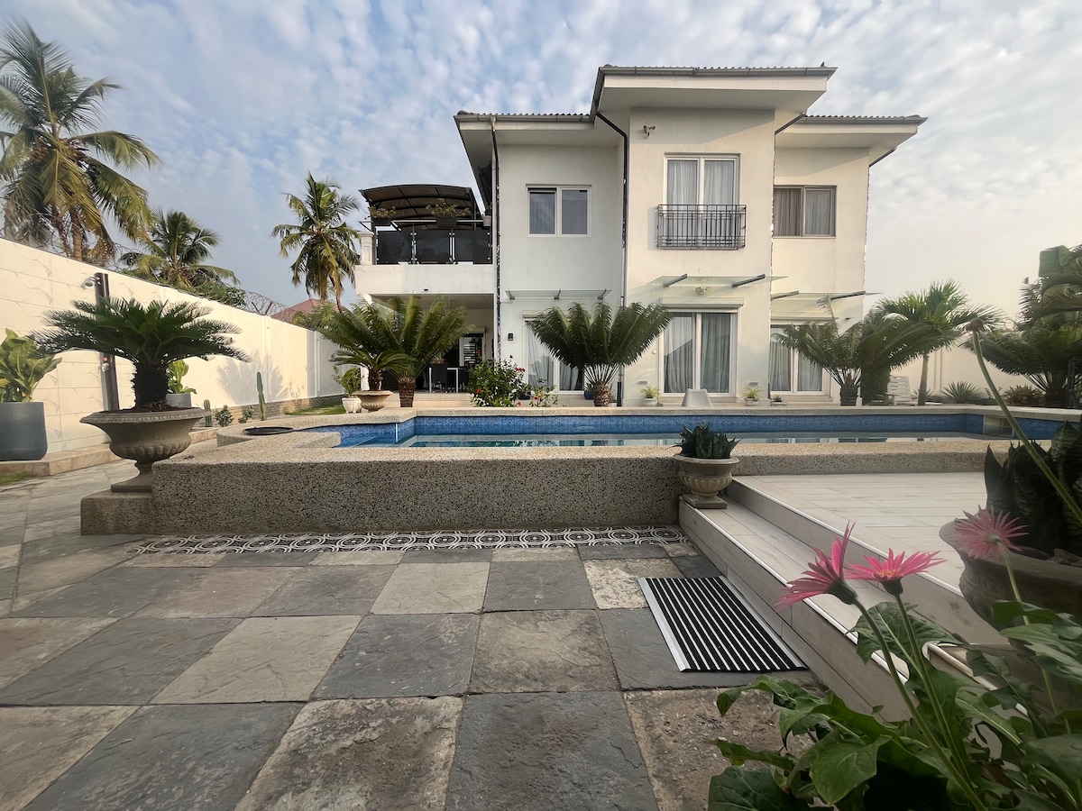 Petit Hambourg - Villa with pool - for your luxury vacation only 2.9 km from the beach. Enjoy your stay in this exceptional accommodation. A magnificent, modern guesthouse, a very comfortable haven of peace. A little Away from the hustle and bustle of Lomé. You rent a building with 3 bedrooms,for yourself and your travel companions (max 6 people) alone. Le Petit Hambourg is 2.9 km from the Turnaround Baguida Monument on the devego Road on a sandy road.
